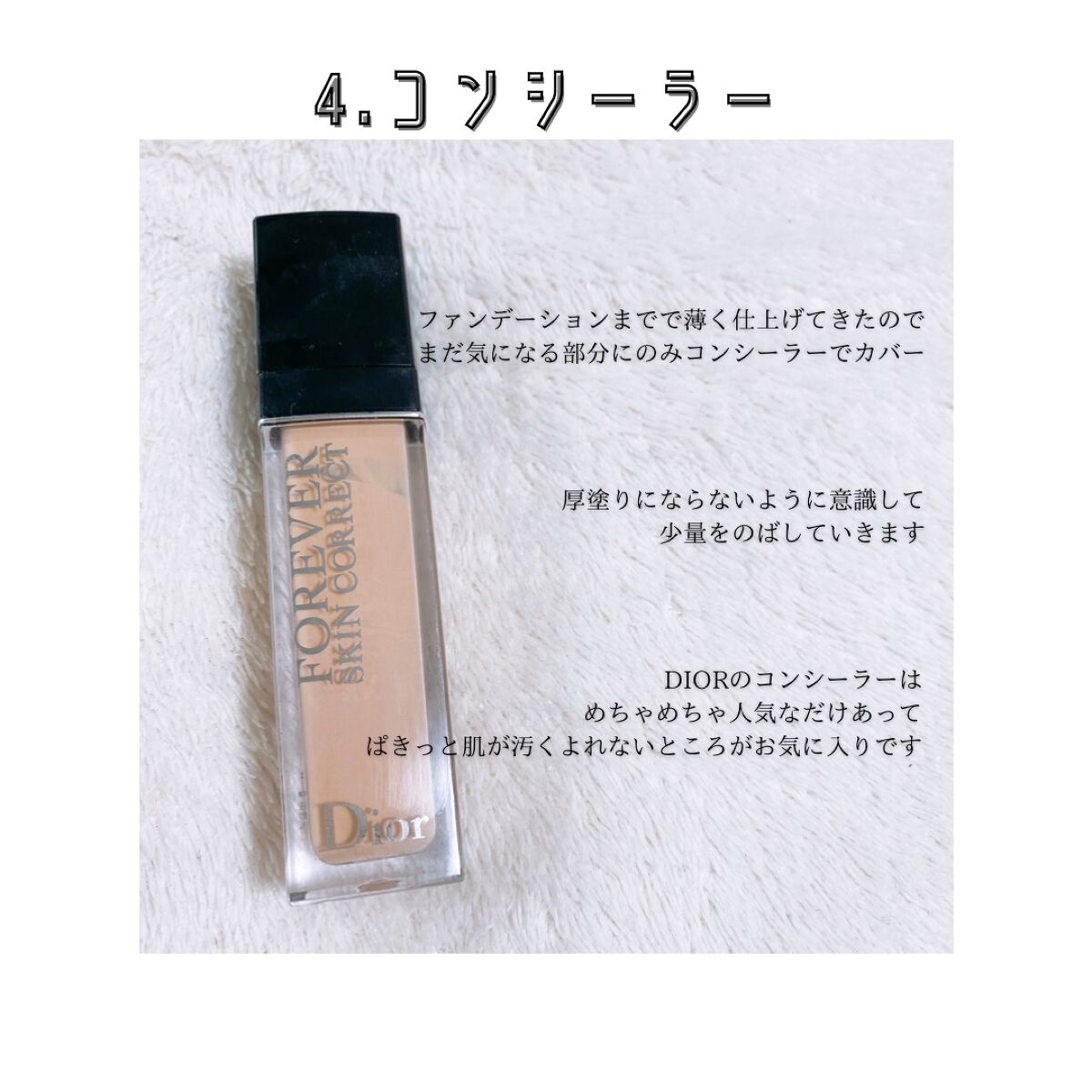 言わずとも知れた大人気商品私も大好きな使用感だった◾️商品ディオールスキンフォーエヴァースキンコレクトコンシーラー0.5Nニュートラル11mL¥5,720バックステージコンシーラーブラシ ¥5,500◾️特徴色ムラや目の下のクマ、赤みなどの...