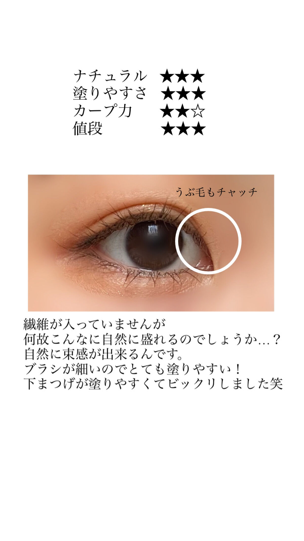 | メイクアップランキング第83位 | ボリューム感はなくナチュラルな感じで 綺麗なセパレート睫毛に仕上がります〜 | 詳細を見る |