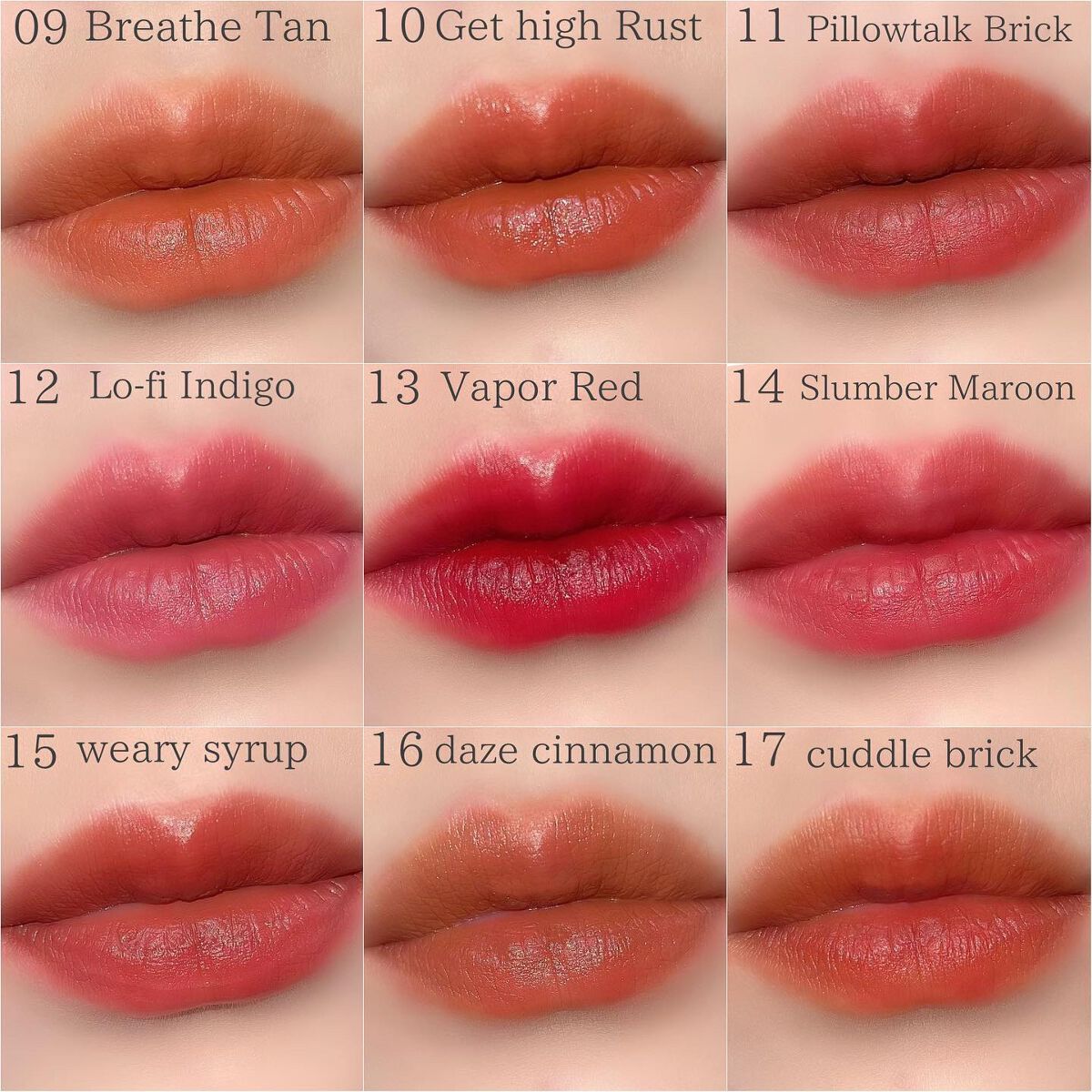 - <M11 ピロウトークブリック> ジメチコン、(ジメチコン/ビニルジメチコン)クロスポリマー、水、グリセリン、セチルPEG/PPG-10/1ジメチコン、トリイソステアリン酸ポリグリセリル-2、ペンチレングリコール、リンゴ酸ジイソステアリル、メチルトリメチコン、マイカ、シリカ、シクロペンタシロキサン、(アクリル酸ブチル/アクリル酸ヒドロキシプロピルジメチコン)コポリマー、イソドデカン、フェノキシエタノール、トリメチルシロキシケイ酸、(アクリル酸グリセリル/アクリル酸)コポリマー、ポリプロピルシルセスキオキサン、カプリリルグリコール、1,2-ヘキサンジオール、プロパンジオール、香料、エチルヘキシルグリセリン、ジメチルシリル化シリカ、水酸化Al、ダイウイキョウ果実エキス、メチコン、ワサビノキ種子油、アルガニアスピノサ核油、ヤシ油、シア脂、ハチミツエキス、BG、酸化チタン、酸化鉄、赤202、赤227、黄5、青1 <M12 ローファイインディゴ> ジメチコン、(ジメチコン/ビニルジメチコン)クロスポリマー、水、グリセリン、トリイソステアリン酸ポリグリセリル-2、セチルPEG/PPG-10/1ジメチコン、ペンチレングリコール、シクロペンタシロキサン、メチルトリメチコン、(アクリル酸ブチル/アクリル酸ヒドロキシプロピルジメチコン)コポリマー、イソドデカン、リンゴ酸ジイソステアリル、フェノキシエタノール、トリメチルシロキシケイ酸、(アクリル酸グリセリル/アクリル酸)コポリマー、マイカ、シリカ、ポリプロピルシルセスキオキサン、カプリリルグリコール、1,2-ヘキサンジオール、水酸化Al、プロパンジオール、香料、エチルヘキシルグリセリン、ジメチルシリル化シリカ、ダイウイキョウ果実エキス、メチコン、ワサビノキ種子油、アルガニアスピノサ核油、ヤシ油、シア脂、ハチミツエキス、BG、酸化チタン、酸化鉄、赤202、赤227、黄5、青1 <M13 ベイパーレッド> ジメチコン、(ジメチコン/ビニルジメチコン)クロスポリマー、水、グリセリン、トリイソステアリン酸ポリグリセリル-2、セチルPEG/PPG-10/1ジメチコン、ペンチレングリコール、メチルトリメチコン、リンゴ酸ジイソステアリル、(アクリル酸ブチル/アクリル酸ヒドロキシプロピルジメチコン)コポリマー、イソドデカン、フェノキシエタノール、トリメチルシロキシケイ酸、(アクリル酸グリセリル/アクリル酸)コポリマー、マイカ、シリカ、ポリプロピルシルセスキオキサン、カプリリルグリコール、シクロペンタシロキサン、1,2-ヘキサンジオール、プロパンジオール、香料、エチルヘキシルグリセリン、ジメチルシリル化シリカ、ダイウイキョウ果実エキス、メチコン、アルガニアスピノサ核油、ヤシ油、シア脂、ワサビノキ種子油、ハチミツエキス、BG、酸化鉄、赤104(1)、赤202、赤227、黄4、黄5、青1 <M14 ランバーマルーン> ジメチコン、(ジメチコン/ビニルジメチコン)クロスポリマー、水、トリイソステアリン酸ポリグリセリル-2、グリセリン、セチルPEG/PPG-10/1ジメチコン、リンゴ酸ジイソステアリル、ペンチレングリコール、シクロペンタシロキサン、メチルトリメチコン、(アクリル酸ブチル/アクリル酸ヒドロキシプロピルジメチコン)コポリマー、イソドデカン、フェノキシエタノール、トリメチルシロキシケイ酸、(アクリル酸グリセリル/アクリル酸)コポリマー、マイカ、シリカ、ポリプロピルシルセスキオキサン、カプリリルグリコール、1,2-ヘキサンジオール、プロパンジオール、香料、エチルヘキシルグリセリン、ジメチルシリル化シリカ、ダイウイキョウ果実エキス、メチコン、アルガニアスピノサ核油、ヤシ油、シア脂、ワサビノキ種子油、ハチミツエキス、BG、酸化鉄、赤202、赤227、黄5、青1 <M15 ウェアリーシロップ> ジメチコン、(ジメチコン/ビニルジメチコン)クロスポリマー、水、グリセリン、セチルPEG/PPG-10/1ジメチコン、シクロペンタシロキサン、トリイソステアリン酸ポリグリセリル-2、ペンチレングリコール、メチルトリメチコン、リンゴ酸ジイソステアリル、(アクリル酸ブチル/アクリル酸ヒドロキシプロピルジメチコン)コポリマー、イソドデカン、フェノキシエタノール、トリメチルシロキシケイ酸、(アクリル酸グリセリル/アクリル酸)コポリマー、マイカ、シリカ、ポリプロピルシルセスキオキサン、カプリリルグリコール、1,2-ヘキサンジオール、プロパンジオール、香料、エチルヘキシルグリセリン、水酸化Al、ジメチルシリル化シリカ、ダイウイキョウ果実エキスメチコン、ヤシ油、シア脂、ワサビノキ種子油、アルガニアスピノサ核油、ハチミツエキス、BG、酸化チタン、酸化鉄、赤202、赤227、黄5、青1 <M16 デイズシナモン> ジメチコン、(ジメチコン/ビニルジメチコン)クロスポリマー、水、グリセリン、セチルPEG/PPG-10/1ジメチコン、トリイソステアリン酸ポリグリセリル-2、シクロペンタシロキサン、ペンチレングリコール、メチルトリメチコン、リンゴ酸ジイソステアリル、マイカ、シリカ、(アクリル酸ブ