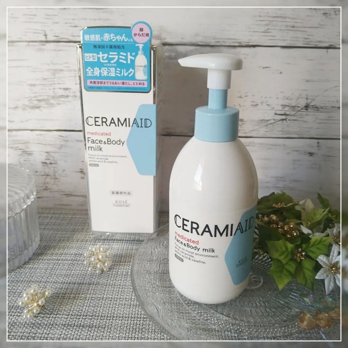 セラミドエイド 薬用スキンミルクは、人が作り出すセラミドと同じ構造をしたヒト型セラミドが肌のバリア機能を補ってくれるボディミルク♪ 無添加の医薬部外品だから赤ちゃんでも使えるくらいやさしい使用感なんだよ👶🤍 ぬれた肌にも使えるからお風呂上がりにささっと塗れちゃうところもお気に入り☺️
