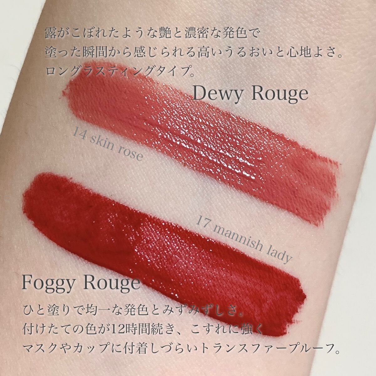 - <01 signature red(Dewy rouge )> ヘキサ(ヒドロキシステアリン酸/ステアリン酸/ロジン酸)ジペンタエリスリチル、トリメチルシロキシケイ酸、イソドデカン、ジフェニルシロキシフェニルトリメチコン、ジカプリン酸ネオペンチルグリコール、マイクロクリスタリンワックス、リンゴ酸ジイソステアリル、トリイソステアリン酸ポリグリセリル-2、ジフェニルジメチコン、水添ポリイソブテン、ラウロイルグルタミン酸ジ(オクチルドデシル/フィトステリル/ベヘニル)、(エチレン/プロピレン)コポリマー、ジメチルシリル化シリカ、パルミチン酸デキストリン、ジステアルジモニウムヘクトライト、アストロカリウムムルムル種子脂、ゼニアオイエキス、ダマスクバラ花エキス、トコフェロール、マツリカ花エキス、レモン果実エキス、BG、BHT、DPG、PEG-9ポリジメチルシロキシエチルジメチコン、エタノール、キサンタンガム、シリカ、ジイソステアリン酸ポリグリセリル-2、ジメチコン、スクワラン、ハイドロゲンジメチコン、パーフルオロヘキシルエチルトリエトキシシラン、ホウケイ酸(Ca/Al)、ミネラルオイル、メタクリル酸メチルクロスポリマー、メチコン、ラウリルPEG-9ポリジメチルシロキシエチルジメチコン、レシチン、水、水酸化Al、炭酸Ca、麻セルロース、フェノキシエタノール、香料、オキシ塩化ビスマス、マイカ、酸化チタン、酸化鉄、黄4、赤202 <05 signature red(Foggy rouge)> イソドデカン、トリメチルシロキシケイ酸、合成ワックス、ジカプリン酸ネオペンチルグリコール、合成金雲母、ワセリン、(エチレン/プロピレン)コポリマー、シリカ、エチルヘキサン酸セチル、ジメチコン、アストロカリウムムルムル種子脂、ゼニアオイエキス、ダマスクバラ花エキス、トコフェロール、マツリカ花エキス、レモン果実エキス、BG、BHT、DPG、PEG-9ポリジメチルシロキシエチルジメチコン、エタノール、キサンタンガム、ジイソステアリン酸ポリグリセリル-2、ジステアルジモニウムヘクトライト、スクワラン、パーフルオロヘキシルエチルトリエトキシシラン、パルミチン酸デキストリン、ホウケイ酸(Ca/Al)、ミネラルオイル、メタクリル酸メチルクロスポリマー、ラウリルポリグリセリル-3ポリジメチルシロキシエチルジメチコン、レシチン、水、水酸化Al、炭酸Ca、麻セルロース、フェノキシエタノール、香料、オキシ塩化ビスマス、マイカ、酸化チタン、酸化鉄、黄4、赤202 <06 urban wear(Dewy rouge )> ヘキサ(ヒドロキシステアリン酸/ステアリン酸/ロジン酸)ジペンタエリスリチル、トリメチルシロキシケイ酸、イソドデカン、ジフェニルシロキシフェニルトリメチコン、ジカプリン酸ネオペンチルグリコール、マイクロクリスタリンワックス、リンゴ酸ジイソステアリル、トリイソステアリン酸ポリグリセリル-2、ジフェニルジメチコン、水添ポリイソブテン、ラウロイルグルタミン酸ジ(オクチルドデシル/フィトステリル/ベヘニル)、(エチレン/プロピレン)コポリマー、ジメチルシリル化シリカ、パルミチン酸デキストリン、ジステアルジモニウムヘクトライト、アストロカリウムムルムル種子脂、ゼニアオイエキス、ダマスクバラ花エキス、トコフェロール、マツリカ花エキス、レモン果実エキス、BG、BHT、DPG、PEG-9ポリジメチルシロキシエチルジメチコン、エタノール、キサンタンガム、シリカ、ジイソステアリン酸ポリグリセリル-2、ジメチコン、スクワラン、ハイドロゲンジメチコン、パーフルオロヘキシルエチルトリエトキシシラン、ホウケイ酸(Ca/Al)、ミネラルオイル、メタクリル酸メチルクロスポリマー、メチコン、ラウリルPEG-9ポリジメチルシロキシエチルジメチコン、レシチン、水、水酸化Al、炭酸Ca、麻セルロース、フェノキシエタノール、香料、オキシ塩化ビスマス、マイカ、酸化チタン、酸化鉄、黄4、赤202 <08 bitter lips(Dewy rouge )> ヘキサ(ヒドロキシステアリン酸/ステアリン酸/ロジン酸)ジペンタエリスリチル、トリメチルシロキシケイ酸、イソドデカン、ジフェニルシロキシフェニルトリメチコン、ジカプリン酸ネオペンチルグリコール、マイクロクリスタリンワックス、トリイソステアリン酸ポリグリセリル-2、リンゴ酸ジイソステアリル、ジフェニルジメチコン、水添ポリイソブテン、ラウロイルグルタミン酸ジ(オクチルドデシル/フィトステリル/ベヘニル)、(エチレン/プロピレン)コポリマー、ジメチルシリル化シリカ、パルミチン酸デキストリン、ジステアルジモニウムヘクトライト、アストロカリウムムルムル種子脂、ゼニアオイエキス、ダマスクバラ花エキス、トコフェロール、マツリカ花エキス、レモン果実エキス、BG、BHT、DPG、PEG-9ポリジメチルシロキシエチルジメチコン、エタノール、キサンタンガム、シリカ、ジイソステアリン酸ポリグリセリル-2、ジメチコン、スクワラン、ハイドロゲンジメチコン、パーフルオロヘキシルエチルトリエトキシシラン、ホウケイ酸(Ca/Al)、ミネラルオイル、メタクリル酸メチルクロ