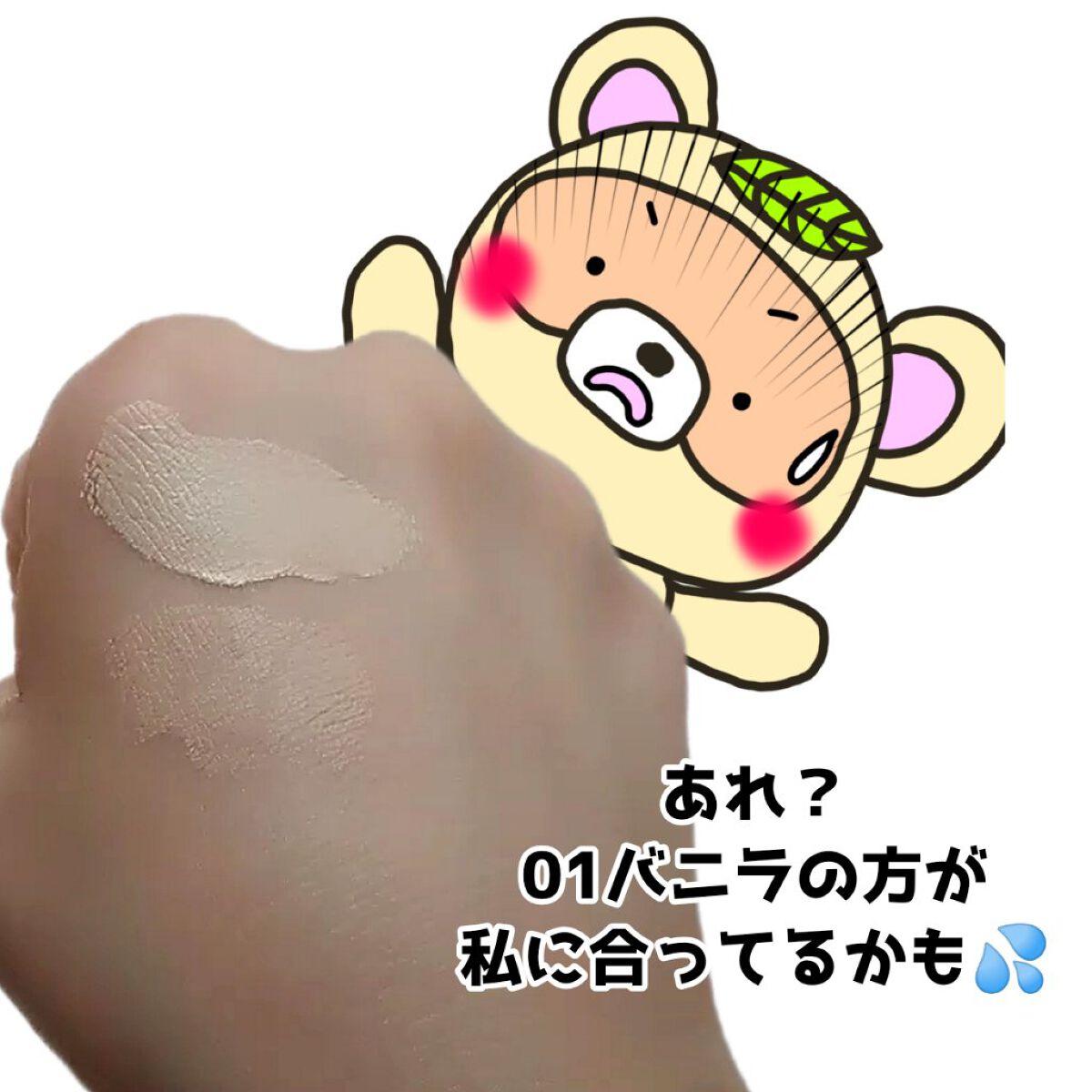 - <0.5 ポーセリン> 水、シクロペンタシロキサン、フェニルトリメチコン、タルク、セチルPEG/PPG-10/1ジメチコン、BG、PVP、ナイアシンアミド、(ビニルジメチコン/メチコンシルセスキオキサン)クロスポリマー、PEG-10ジメチコン、塩化Na、ジステアルジモニウムヘクトライト、トリエトキシカプリリルシラン、水酸化Al、p-アニス酸、カプリル酸グリセリル、パルミチン酸、ジメチコン、ステアリン酸、アデノシン、ツボクサエキス、スベリヒユエキス、カミツレ花エキス、セイヨウニンジンボク果実エキス、ヒポファエラムノイデス果実エキス、香料、酸化チタン、酸化鉄 <0.7 アイボリー> 水、シクロペンタシロキサン、フェニルトリメチコン、タルク、セチルPEG/PPG-10/1ジメチコン、BG、PVP、ナイアシンアミド、(ビニルジメチコン/メチコンシルセスキオキサン)クロスポリマー、PEG-10ジメチコン、塩化Na、ジステアルジモニウムヘクトライト、トリエトキシカプリリルシラン、水酸化Al、p-アニス酸、カプリル酸グリセリル、パルミチン酸、ジメチコン、ステアリン酸、アデノシン、ツボクサエキス、スベリヒユエキス、カミツレ花エキス、セイヨウニンジンボク果実エキス、ヒポファエラムノイデス果実エキス、香料、酸化チタン、酸化鉄 <01 バニラ> 水、シクロペンタシロキサン、フェニルトリメチコン、タルク、セチルPEG/PPG-10/1ジメチコン、BG、PVP、ナイアシンアミド、(ビニルジメチコン/メチコンシルセスキオキサン)クロスポリマー、PEG-10ジメチコン、塩化Na、ジステアルジモニウムヘクトライト、トリエトキシカプリリルシラン、水酸化Al、p-アニス酸、カプリル酸グリセリル、パルミチン酸、ステアリン酸、ジメチコン、アデノシン、ツボクサエキス、スベリヒユエキス、カミツレ花エキス、セイヨウニンジンボク果実エキス、ヒポファエラムノイデス果実エキス、香料、酸化チタン、酸化鉄 <02 ベージュ> 水、シクロペンタシロキサン、フェニルトリメチコン、タルク、セチルPEG/PPG-10/1ジメチコン、BG、PVP、ナイアシンアミド、(ビニルジメチコン/メチコンシルセスキオキサン)クロスポリマー、PEG-10ジメチコン、塩化Na、ジステアルジモニウムヘクトライト、トリエトキシカプリリルシラン、水酸化Al、p-アニス酸、カプリル酸グリセリル、パルミチン酸、ステアリン酸、ジメチコン、アデノシン、ツボクサエキス、スベリヒユエキス、カミツレ花エキス、セイヨウニンジンボク果実エキス、ヒポファエラムノイデス果実エキス、香料、酸化チタン、酸化鉄 <03 ブライト> 水、シクロペンタシロキサン、酸化チタン、炭酸ジエチルヘキシル、BG、ネオペンタン酸イソデシル、PEG-10ジメチコン、グリセリン、安息香酸アルキル(C12-15)、(VP/ヘキサデセン)コポリマー、ナイアシンアミド、クオタニウム-18ベントナイト、セスキオレイン酸ソルビタン、塩化Na、ミツロウ、シリカ、(ジメチコン/ビニルジメチコン)クロスポリマー、トリエトキシカプリリルシラン、水酸化Al、1,2-ヘキサンジオール、カプリリルグリコール、酢酸トコフェロール、アデノシン、ジメチコン、ツボクサエキス、スベリヒユエキス、カミツレ花エキス、セイヨウニンジンボク果実エキス、ヒポファエラムノイデス果実エキス、酸化鉄、グンジョウ