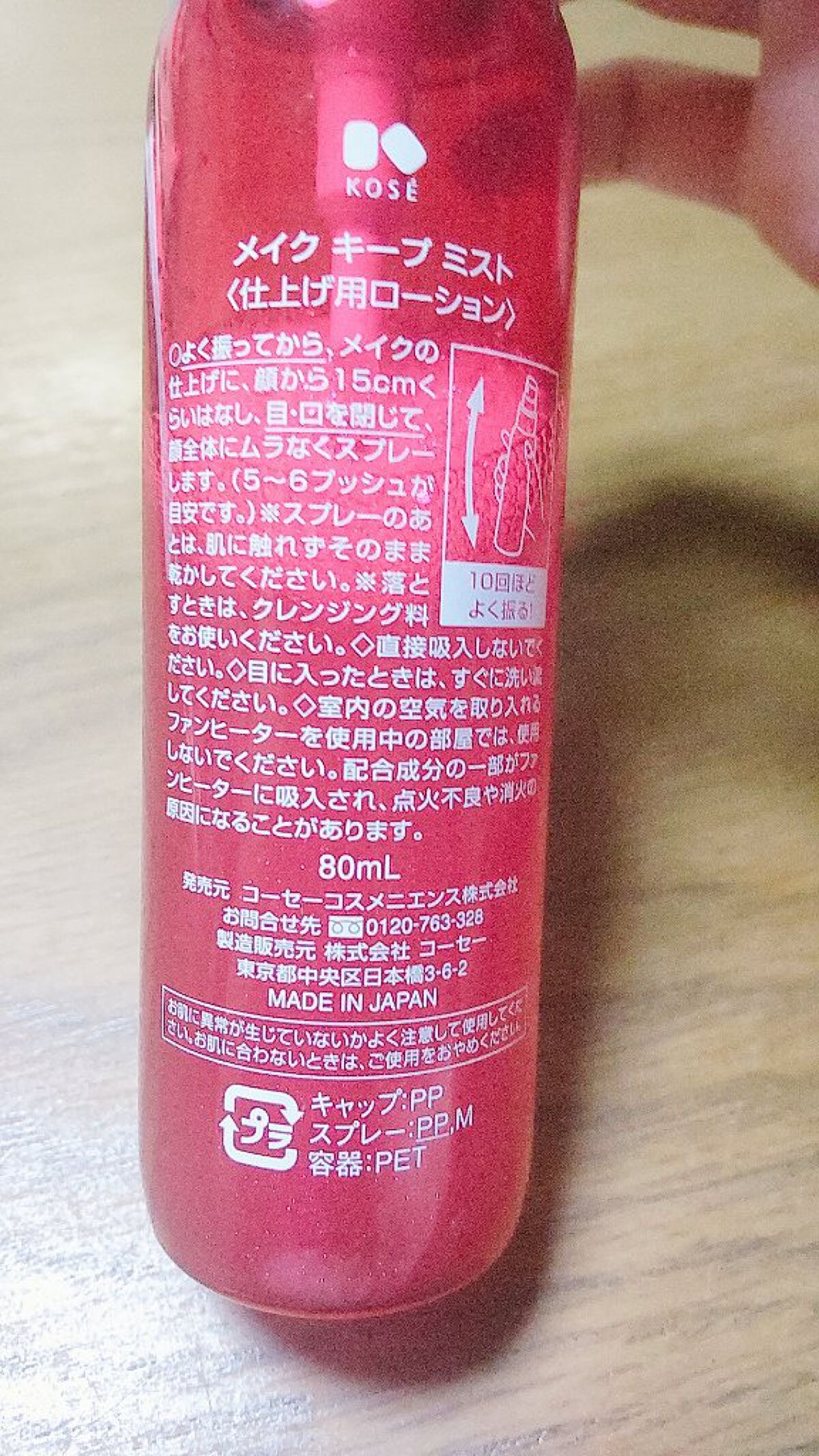 - メイクキープ力がパワーアップ! メイクの仕上げにサッとひと吹き、化粧くずれを防ぐふんわりミストスプレー。 メイクキープ力がパワーアップ! ウォータープルーフ効果に加え、皮脂くずれ防止効果で驚きのメイクキープ力を発揮します。 ● さらに細かくふんわりと噴霧するミストに進化。均一な一枚の膜を作ります。 ● つけたての美しいメイクを長時間持続。 メイクコート成分配合。しっかりとメイクを固定しながら、顔の動きに合わせて伸縮するため、時間がたってもメイクがヨレにくく、美しい仕上がりを長時間持続します。 ● マスク着用によるメイクのヨレを防止し、マスクにメイクが付きにくくします。 ● メイクくずれから守るだけでなく、大気中の微粒子(ちり・ほこりなど)からも肌をまもります。 ● 汗や水、皮脂まではじくため、メイクによるテカリやにじみをしっかりと抑えます。 ● 保湿成分配合。うるおいを与えて乾燥を防ぎます。 ● フレッシュフローラルの香り ● 無着色 <ご注意> 低温下では中身が白く固まりやすくなりますが、 常温に戻すために湯せんや電子レンジなどを使って高い温度で温めると品質が変化してしまいます。 さらには容器が変形・破損することで、やけどや怪我の恐れがあります。 大変危険ですので、湯せんや電子レンジなどを使って加熱することは絶対にお避けください。
