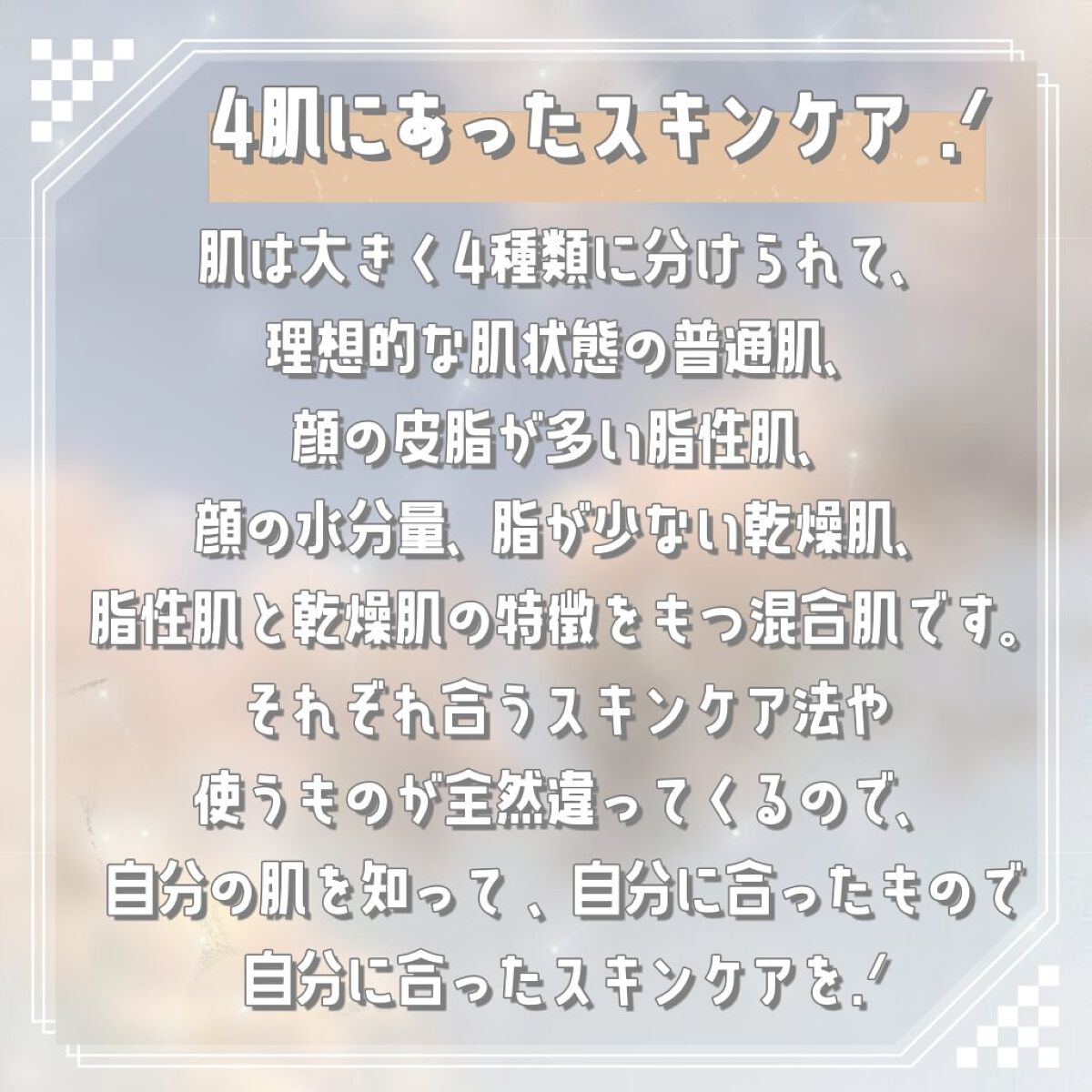 初心者さん必見🔰 基本のスキンケアの順番 クレンジングでメイクや日焼け止めを落とします。 洗顔で顔の汚れを落とします。 導入化粧水 化粧水でしっかり水分を与えて潤いを補給します。 パックを使うか使わないかは自分の肌の状態によって決めてください。 美容液 乳液 最後にクリームで蓋をします。