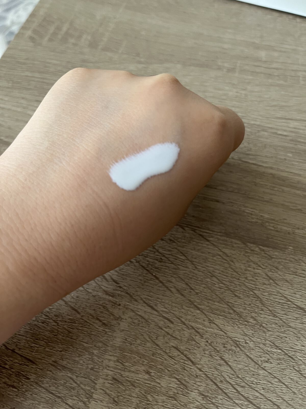 テクスチャーは重め、若干固めで伸びはよくありません。 乾燥肌の私でもメイクをしていて乾燥を感じないくらいの乾燥防止効果はあります!☺️👍 色は画像の通り、ピンクベージュみたいな色です! 伸ばすとほぼ透明になりカバー力はほぼゼロです🥹 サイズも割と小さくてポーチにも収まると思います!