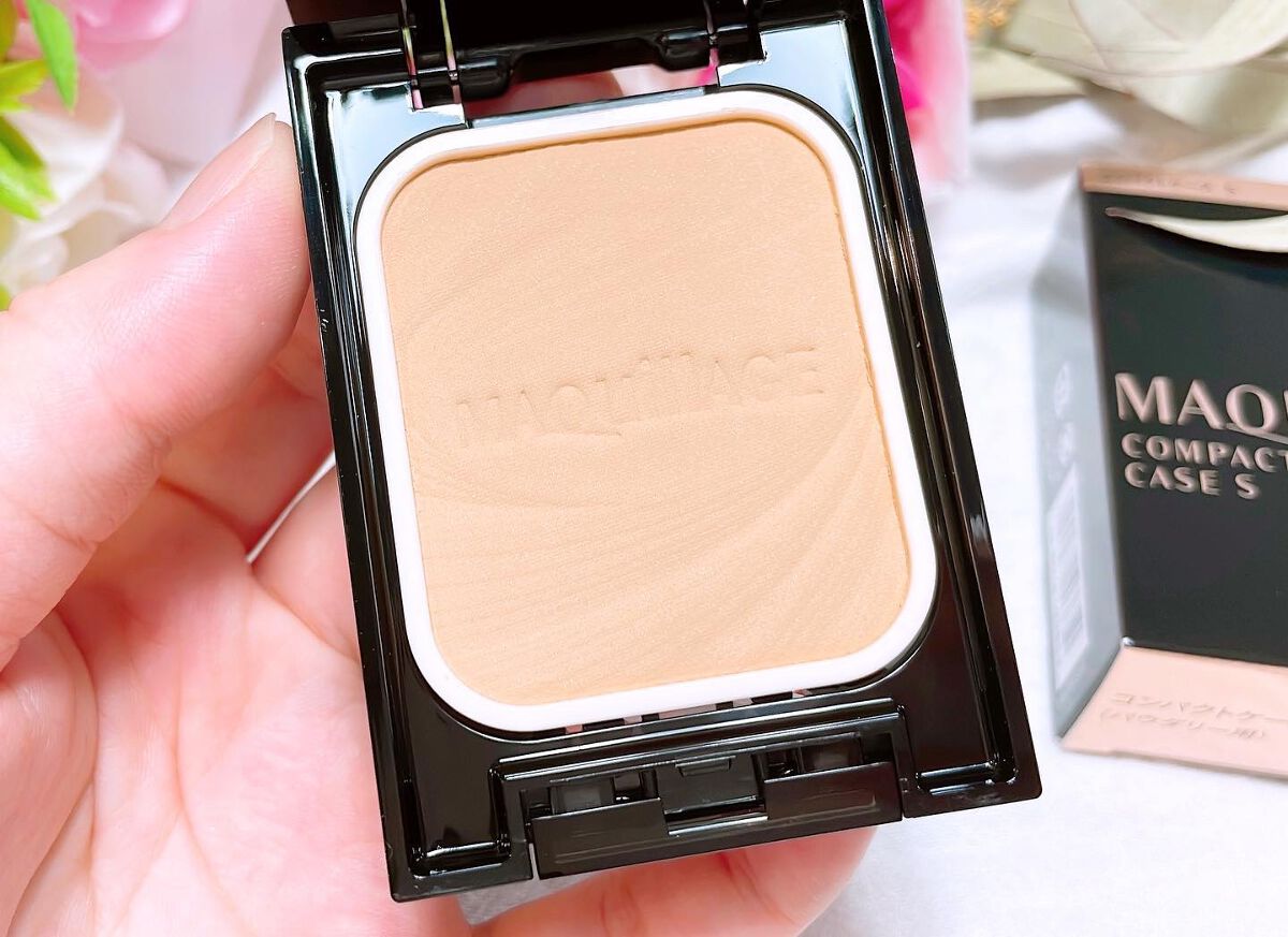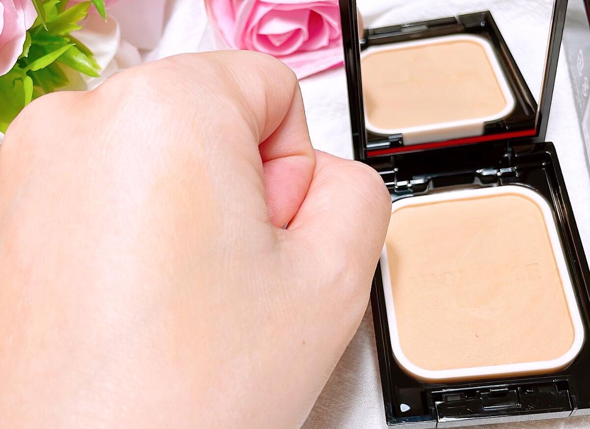 ふんわりとした仕上がりながら自然なツヤ感を演出するパウダーファンデ◎ 資生堂独自の「ムースプレス製法」により、美容液水とパウダーをムース状にして固めた軽やかなテクスチャーが特徴です。 肌に溶け込むようななめらかなフィット感で、毛穴や色ムラをふんわりとカバーしてくれる感じ。