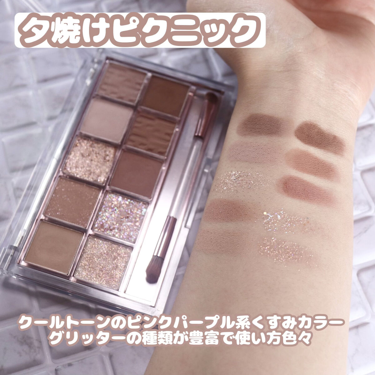 コーラルピンクやくすみ過ぎないレッドが入っているパレット! ラメがイエローラメですごく可愛い! コーラルピンクとレッドのアイシャドウはラメ入りとマットタイプがあって気分に合わせて色んなメイクが出来ます お気に入りポイントは右上のホワイトシルバーのようなカラーにパールがたくさん入っていて涙袋に塗るとぷっくり見えるところ! カラーは一見濃く見えますがテクスチャーが柔らかく、発色は控えめでふんわり発色です 春メイクやピンクメイクがお好きな方にオススメしたい話題のアイシャドウでした!