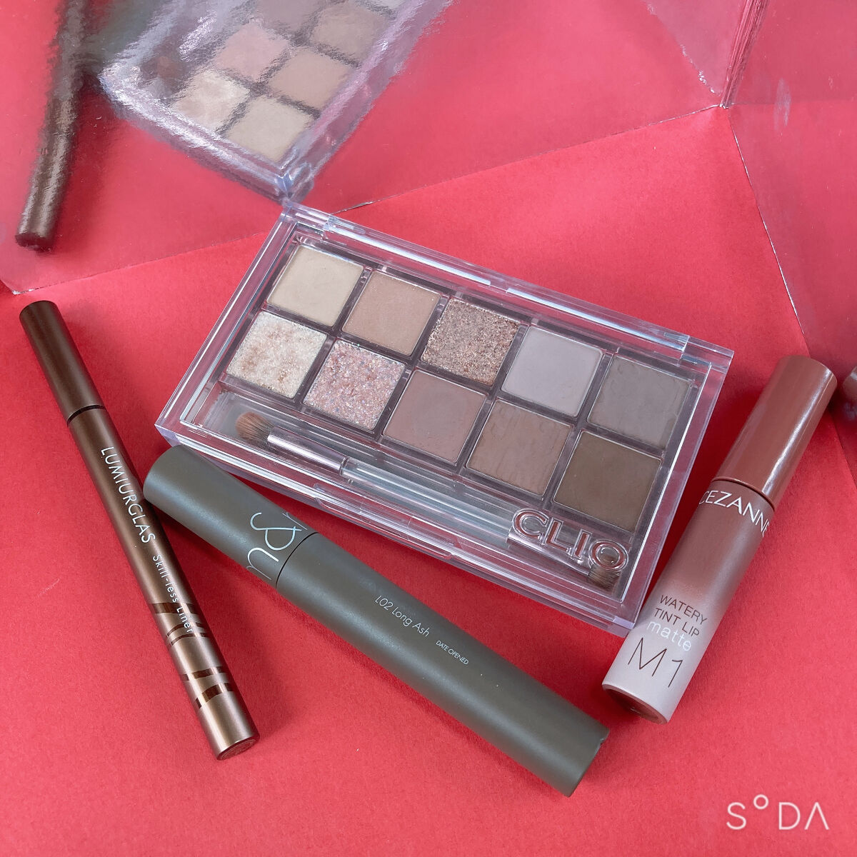 テクスチャーはCLIOのアイシャドウらしい しっとりふんわり発色でグリッターはペトペトしていて粉落ちしずらそうです。 締め色がかなり濃いめブラウンなので意外と 大人っぽいメイクにも調整可能です。 マスカラは柔らかいブラウンにしたくて mudeのBrownを使いました。 今までこんな春らしいイエローぽいグリッターを持っていなかったので今年はたくさん使いたいと思います😄 パケも可愛いのでメイクする度に気分も上がります☺️