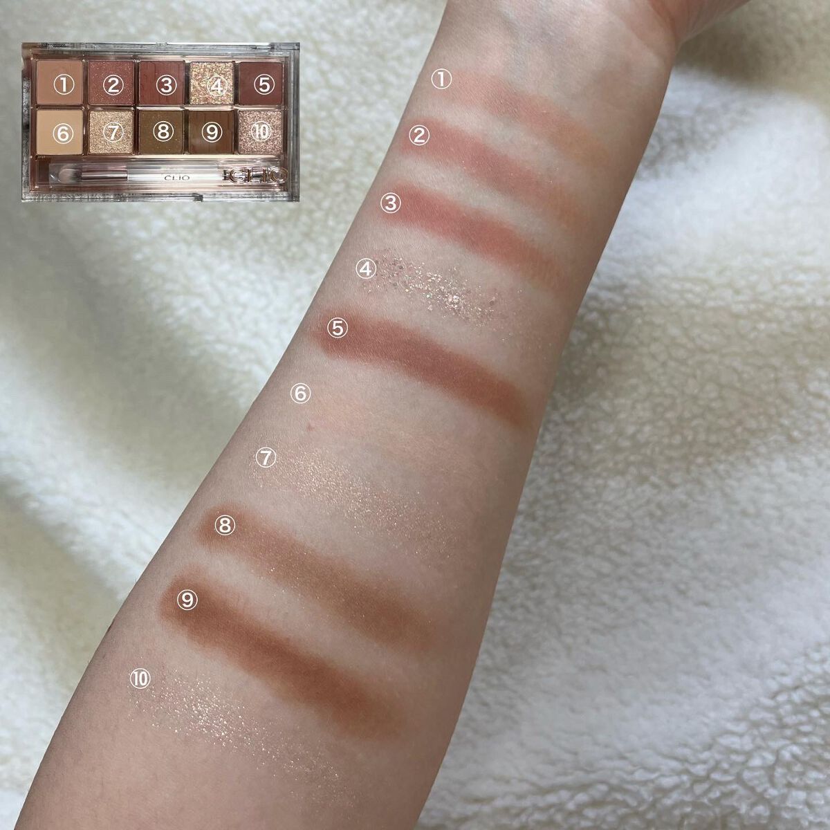 - ひとつのパレットにマット、シマー、グリッターなど多様な質感を贅沢に使用。塗る順序やカラーの組み合わせを変えるだけでデイリーメイクにも、特別な日のお出かけメイクにもできる優れもの。また粉飛びせず、まぶたにしっかり密着します。