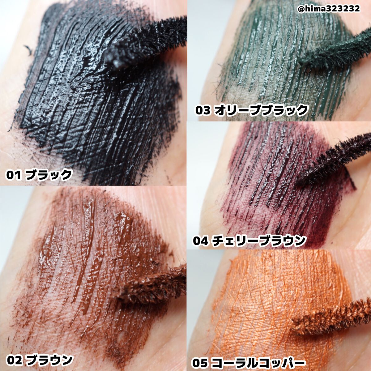 - <01 ブラック> 水、アクリレーツコポリマー、(スチレン/アクリレーツ/メタクリル酸アンモニウム)コポリマー、ミツロウ、カルナウバロウ、PG、エタノール、ナイロン-6、ステアリン酸ソルビタン、ホホバワックスPEG-120エステルズ、アラビアゴム、ホホバ脂、アラリアエスクレンタエキス、ハチミツ、PVP、ステアレス-20、ステアリン酸、ベヘニルアルコール、トリエトキシカプリリルシラン、ジメチコン、(ジメチコン/ビニルジメチコン)クロスポリマー、ラウレス硫酸Na、シリカ、ミリスチン酸、(TDI/無水トリメリト酸)コポリマー、オレアミドオクタデカンジオール、パルミチン酸、トロメタミン、EDTA-2Na、レーヨン、トリステアリン酸スクロース、ヒドロキシエチルセルロース、トリ(カプリル酸/カプリン酸)グリセリル、カプリリルグリコール、EDTA-4Na、ラウレス-21、パンテノール、BG、ソルビン酸K、デヒドロ酢酸Na、フェノキシエタノール、[+/-]、カルミン、グンジョウ、カーボンブラック、酸化クロム、酸化鉄、酸化チタン、黄4、青1、メチコン <02 ブラウン> 水、アクリレーツコポリマー、(スチレン/アクリレーツ/メタクリル酸アンモニウム)コポリマー、ミツロウ、カルナウバロウ、PG、エタノール、ナイロン-6、ステアリン酸ソルビタン、ホホバワックスPEG-120エステルズ、アラビアゴム、ホホバ脂、アラリアエスクレンタエキス、ハチミツ、PVP、ステアレス-20、ステアリン酸、ベヘニルアルコール、トリエトキシカプリリルシラン、ジメチコン、(ジメチコン/ビニルジメチコン)クロスポリマー、ラウレス硫酸Na、シリカ、ミリスチン酸、(TDI/無水トリメリト酸)コポリマー、オレアミドオクタデカンジオール、パルミチン酸、トロメタミン、EDTA-2Na、レーヨン、トリステアリン酸スクロース、ヒドロキシエチルセルロース、トリ(カプリル酸/カプリン酸)グリセリル、カプリリルグリコール、EDTA-4Na、ラウレス-21、パンテノール、BG、ソルビン酸K、デヒドロ酢酸Na、フェノキシエタノール、[+/-]、カルミン、グンジョウ、カーボンブラック、酸化クロム、酸化鉄、酸化チタン、黄4、青1、メチコン <03 オリーブブラック> 水、アクリレーツコポリマー、(スチレン/アクリレーツ/メタクリル酸アンモニウム)コポリマー、ミツロウ、カルナウバロウ、PG、エタノール、ナイロン-6、ステアリン酸ソルビタン、ホホバワックスPEG-120エステルズ、アラビアゴム、ホホバ脂、アラリアエスクレンタエキス、ハチミツ、PVP、ステアレス-20、ステアリン酸、ベヘニルアルコール、トリエトキシカプリリルシラン、ジメチコン、(ジメチコン/ビニルジメチコン)クロスポリマー、ラウレス硫酸Na、シリカ、ミリスチン酸、(TDI/無水トリメリト酸)コポリマー、オレアミドオクタデカンジオール、パルミチン酸、トロメタミン、EDTA-2Na、レーヨン、トリステアリン酸スクロース、ヒドロキシエチルセルロース、トリ(カプリル酸/カプリン酸)グリセリル、カプリリルグリコール、EDTA-4Na、ラウレス-21、パンテノール、BG、ソルビン酸K、デヒドロ酢酸Na、フェノキシエタノール、[+/-]、カルミン、グンジョウ、カーボンブラック、酸化クロム、酸化鉄、酸化チタン、黄4、青1、メチコン <04 チェリーブラック> 水、アクリレーツコポリマー、(スチレン/アクリレーツ/メタクリル酸アンモニウム)コポリマー、ミツロウ、カルナウバロウ、PG、エタノール、ナイロン-6、ステアリン酸ソルビタン、ホホバワックスPEG-120エステルズ、アラビアゴム、ホホバ脂、アラリアエスクレンタエキス、ハチミツ、PVP、ステアレス-20、ステアリン酸、ベヘニルアルコール、トリエトキシカプリリルシラン、ジメチコン、(ジメチコン/ビニルジメチコン)クロスポリマー、ラウレス硫酸Na、シリカ、ミリスチン酸、(TDI/無水トリメリト酸)コポリマー、オレアミドオクタデカンジオール、パルミチン酸、トロメタミン、EDTA-2Na、レーヨン、トリステアリン酸スクロース、ヒドロキシエチルセルロース、トリ(カプリル酸/カプリン酸)グリセリル、カプリリルグリコール、EDTA-4Na、ラウレス-21、パンテノール、BG、ソルビン酸K、デヒドロ酢酸Na、フェノキシエタノール、[+/-]、カルミン、グンジョウ、カーボンブラック、酸化クロム、酸化鉄、酸化チタン、黄4、青1、メチコン <05R コーラルコッパー> 水、アクリレーツコポリマー、(スチレン/アクリレーツ/メタクリル酸アンモニウム)コポリマー、カルナウバロウ、ミツロウ、PG、エタノール、ナイロン-6、ステアリン酸ソルビタン、ホホバワックスPEG-120エステルズ、ジメチコン、ステアリン酸、ステアレス-20、トロメタミン、フェノキシエタノール、パルミチン酸、カプリリルグリコール、シリカ、アラビアゴム、ベヘニルアルコール、ホホバ脂、トリステアリン酸スクロース、ヒドロキシエチルセルロース、デヒドロ酢酸Na、BG、(ジメチコン/ビニルジメチコン)クロスポリマー、PVP、ラウレス硫酸Na、ラウレス-21、EDTA-2Na、ミリスチン酸、EDTA-4Na、ソルビン酸K、(TDI/無水ト