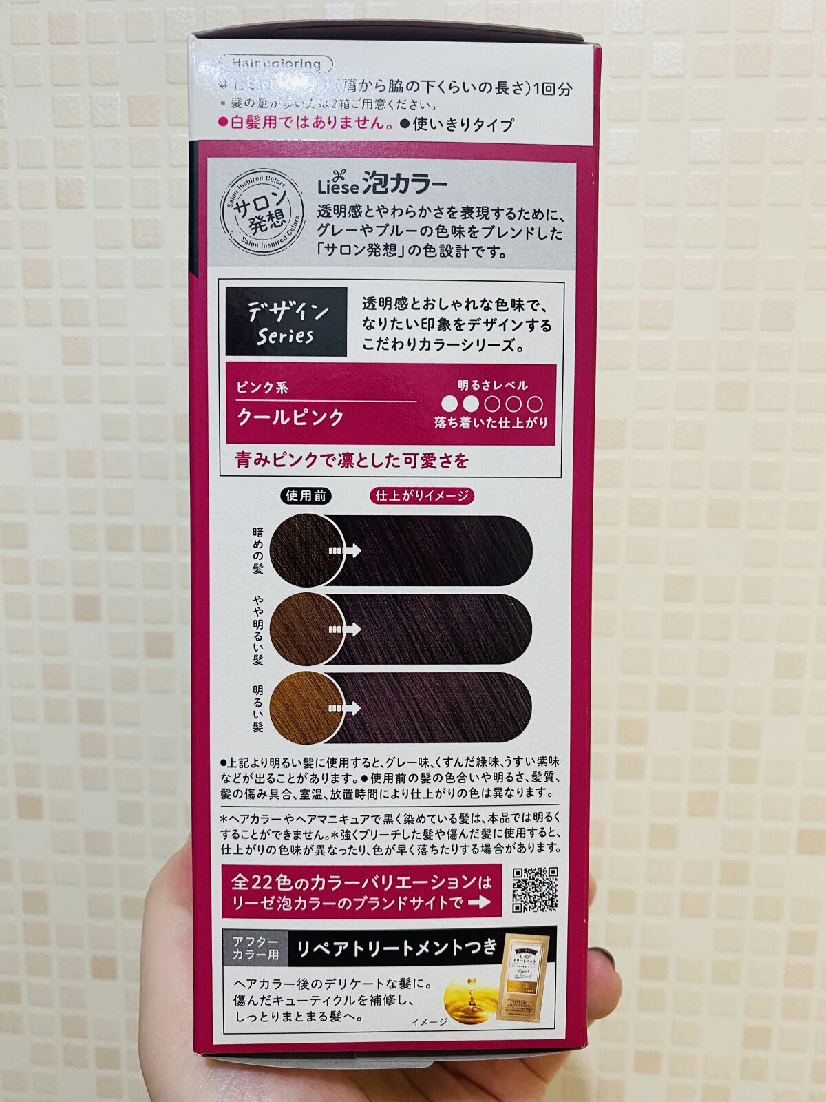 - 【医薬部外品】 【黒髪用ヘアカラー】 泡で簡単! 濃密泡が染まりにくい根元や見えない後ろにもしっかり密着して、ムラなく美しい仕上がりを実現。 透明感とやわらかさを表現するために、グレーやブルーの色味をブレンドした「サロン発想」の色設計。 毛髪保護成分*配合。指通りなめらか、しっとり質感の染め上がり。 *水解シルク液、軟質ラノリン脂肪酸 アフターカラー用リペアトリートメント(化粧品)つき。 ●セミロングヘア(肩から脇の下くらいの長さ)1回分 ●1回使いきりタイプ ●白髪用ではありません ※使用上の注意をよく読んで、正しくお使いください。 ※ヘアカラーでかゆみ、発疹、発赤がでたことのある方は、絶対に使用しないでください。