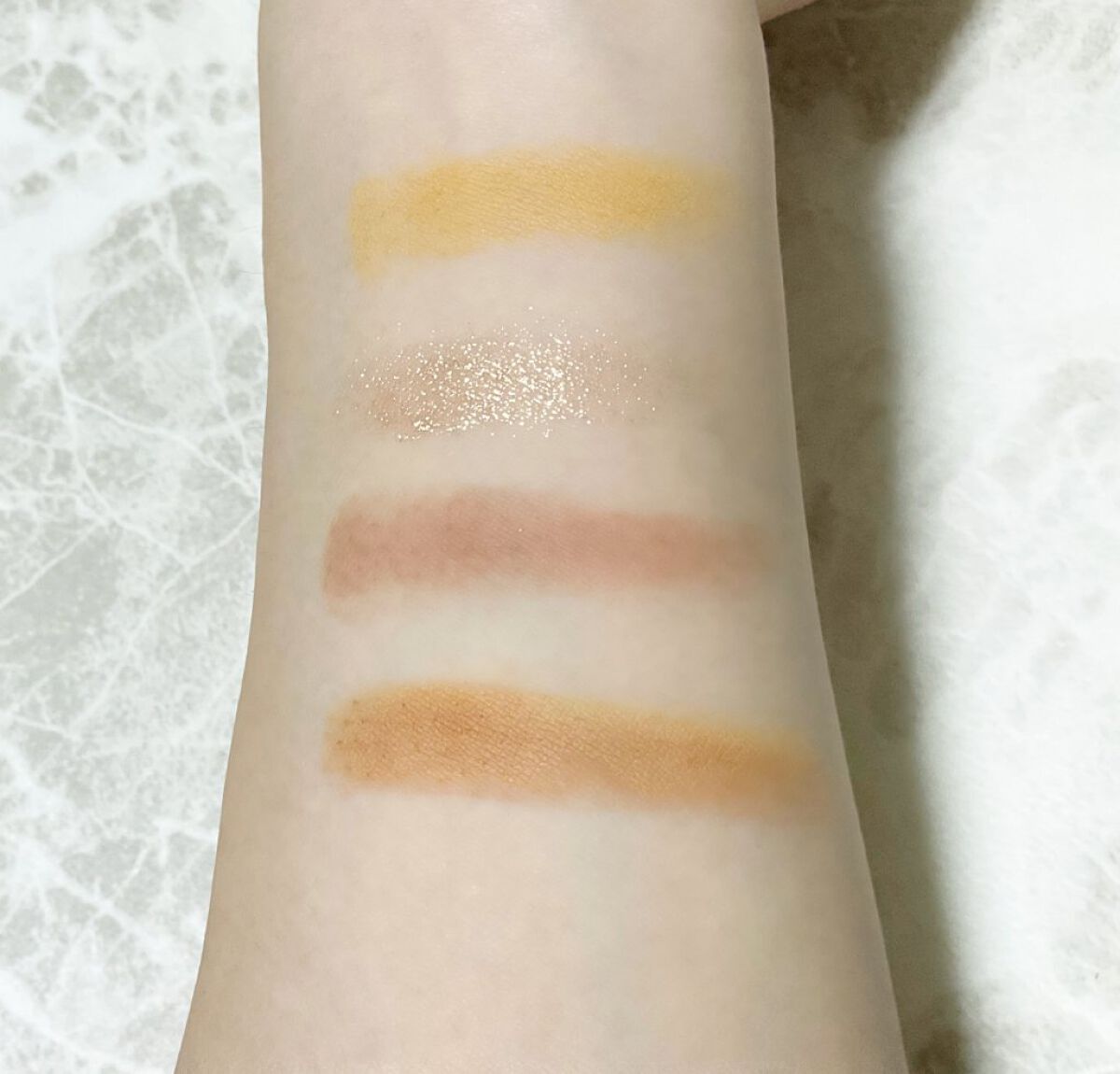 ラズベリータルトの名前の通り、こっくりしたバーガンディーとテラコッタカラーが一つになった秋色パレットです♡ 私は左下をメインに右上のラズベリー色をちょこっと目尻に入れて大人っぽく仕上げるのが好みです。 全体的に深みのある落ち着いたカラーですが、真ん中のラメを瞼の真ん中にのせると程よく透明感も出ます。 一つで色んな楽しみ方ができるパレットでこれからの季節大活躍してくれそうです♡