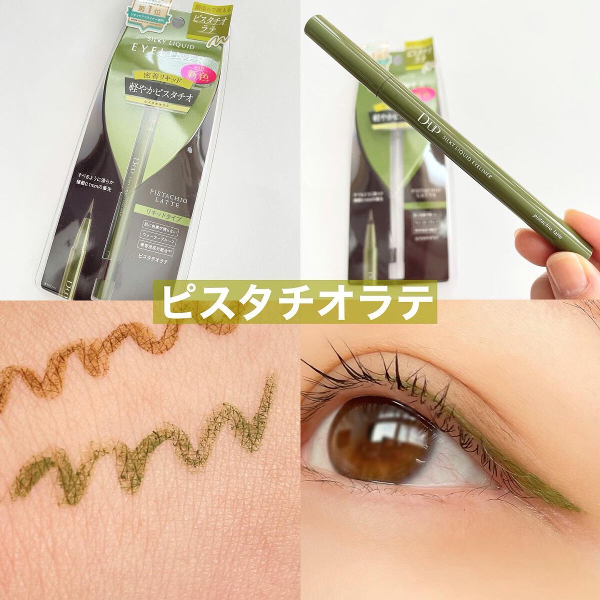 馴染んで映えるグリーンの抜け感アクセント💚ちょうどいいくすみと透け感♡まるでピスタチオラテのグリーンカラーのアイライナー☕️するするかけるしなやかでコシのある極細0.1mmの筆先。かすれにくい滑らかな描き心地♡テクニック不要で簡単に美しいライ...