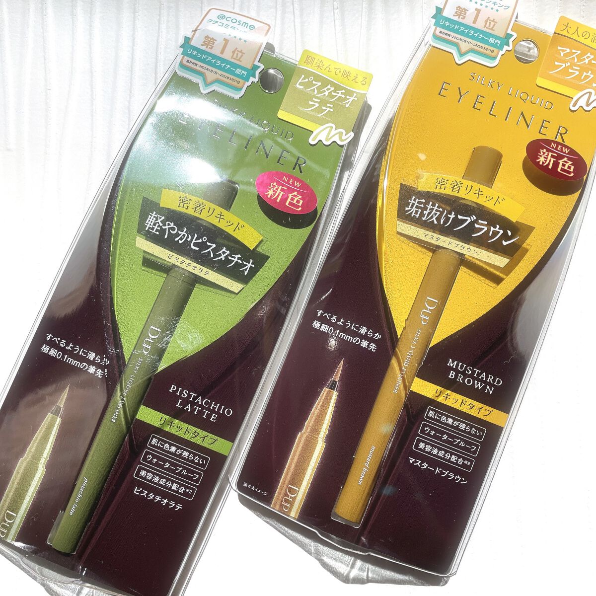 - 筆先までずっとなめらか、目尻で感動するリキッドアイライナー。 必要な量が肌にのる新設計で、まぶたの上をすべるような、滑らかな描き心地。しなやかでコシのある筆が、筆圧のコントロールを容易にし、太いラインも細いラインも思い通りに仕上げます。水、汗、涙に強いウォータープルーフタイプなのに、通常洗顔で簡単オフ。肌に色素が残らない顔料を使用。5種類の美容液成分を従来品の200%配合し、メイクしながら目元ケアまで。 ●ブラウンブラック ※2020年9月12日 バラエティショップ先行発売 ●漆黒ブラック ※2020年12月頃発売予定 ●ナチュラルブラウン ※2020年12月頃発売予定 ●シフォンブラウン 「毎日メイクに透明感と抜け感」 ブラウンでも、グレーでも、ベージュでもないニュアンスカラー。 自然な印影で素の目元を際立て、頑張りすぎない、ふんわりとした目元に。 ●アプリコットブラウン 「じゅわっと血色感。 肌に馴染むおしゃれカラー」 温かみのあるアプリコットがじゅわっと滲む血色感を目元に演出。 肌馴染みが良いので、カラーライナーに抵抗がある方もブラウンの延長線上で楽しめる、使いやすい色味です。 ”ちょっとオシャレ”な空気感を演出するカラー。 ●ピンクショコラ アイライナー 「ピンクが溶け込む濃厚ブラウン」 肌馴染みが良く、目元にじんわり血色感をプラス。 さりげなく女性らしさが加速するようなカラー。 ●ピスタチオラテ (2022年7月29日(金)発売) 「“目尻”に抜け感アクセント」 肌に馴染むのに映える絶妙なグリーン。 トレンドカラーに“くすみ”と“抜け感”をプラスしたまろやかな発色。 ●マスタードブラウン 「“イエロー”が揺れる、大人の洒落色」 (2022年7月29日(金)発売) まるで太陽のような暖かさを感じる新しいブラウン。 ほんのり感じるイエローでメイクが一気に垢抜ける稀有な色。 ●シフォンピンク(2023年2月10日発売) 「ふんわり柔らか"まろみピンク"」 甘くなりすぎない青みニュアンスで目元の透明感UP。 目元を引き締め、ピンクメイクにありがちな腫れぼったさを解消。 ●ミルクカプチーノ(2023年4月21日発売) まろやかな深みの“優しい締め色” どんなメイクにも合わせやすいカラー。 自然な陰影でさりげなく目幅を拡張します。 ●グレーカシミア(2023年10月1日発売) ブラウンがほんのり溶け込んだ、暖色グレー まろやかな発色で、パーソナルカラーを問わず肌に馴染む 目元の陰影になりすまし、抜け感と目力を欲張りに叶える ●ダークフィグ(2024年6月1日発売) するする”なめらか。描きやすいのに、落ちにくい。 クッキリ可愛いほの甘ダークブラウン ●ピーチモカ(2024年8月1日発売) ふわっと自然に盛れる“桃色ブラウン” ほんのり血色感で目元にうるみ感を演出 ●スターダストブラウン(2024年12月11日発売) キラッと繊細に輝く''星屑ブラウン'' 透け感のあるダークブラウンの色味とラメの輝きが、目元に艶のある立体感を演出 ●チャコールモカ(2025年4月10日発売) 目元を締める''深みグレージュ'' 黄みや赤みに偏りすぎない絶妙な色設計で、自然に目元を強調
