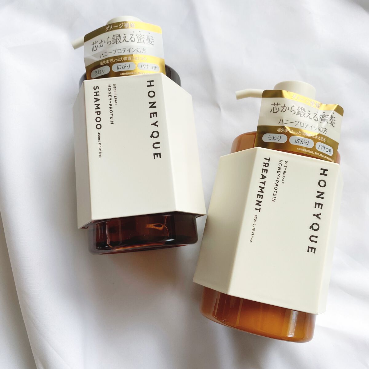 サラサラとした指通りでよかったです! 細い髪で重いシャンプーを使うとベチャッとなりやすいのですが、これはふんわりとした仕上がりでよかったです✨ 香りもハチミツのような甘い香りで癒されます🍯✨ ハニーク ディープリペア シャンプー モイスト ヘアトリートメント モイスト