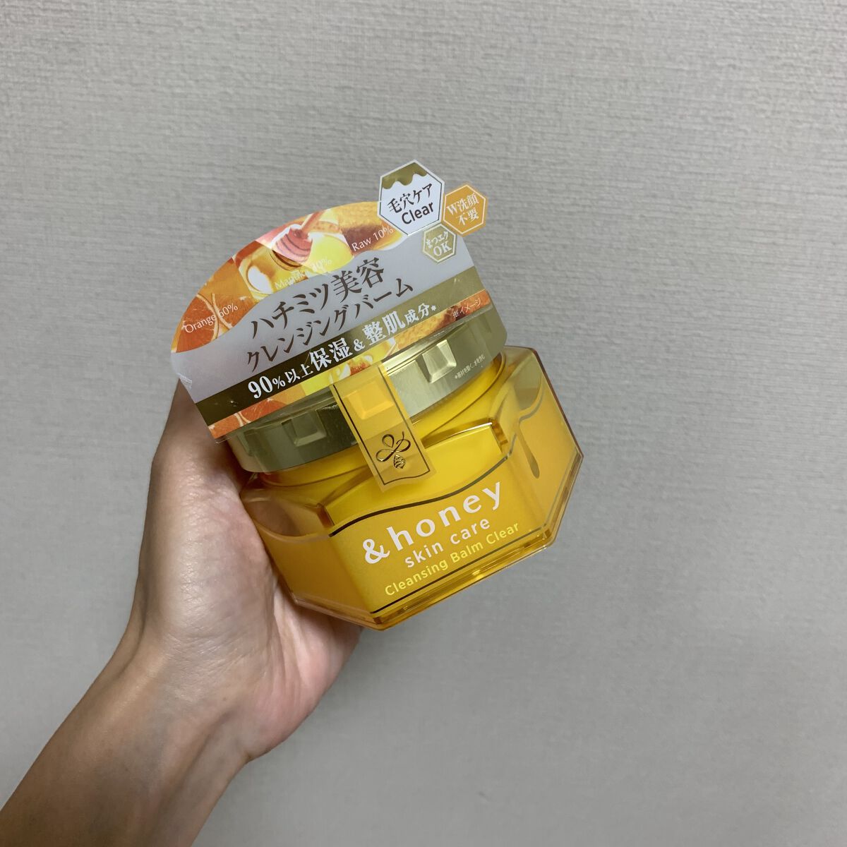- クレンジングバーム クリアは、さっぱり毛穴ケアシリーズ。 パパイン*1とハチミツ*2の潤いピーリング効果*3により、さっぱりとしたクリアな肌へ導きます。 さらに製品の90%以上※1をハチミツ*2やアルガンオイル*4、オーガニックヒアルロン酸*5などの保湿&整肌成分で構成し、ハニークリア成分*6が、毛穴汚れ・皮脂をケアします。 【商品特長】毛穴汚れをしっかり落とし、さっぱりとしたクリアな肌へ導きます 【仕上がり】さっぱり 【おすすめの方】毛穴ケアしたい方 【香り】フレッシュハニーの香り ※1 基剤を除く、水を含む *1 角質ケア *2 保湿 *3 肌表面の古い角質の洗浄 *4 アルガニアスピノサ核油(保湿) *5 加水分解ヒアルロン酸(保湿) *6 パパイン(角質ケア)、ハチミツ(保湿)