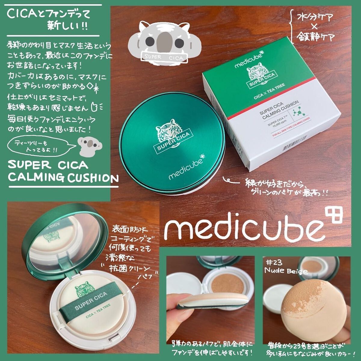 - スーパーシカアンプルの成分が含まれたクッションファンデーションです。 スキンケアをしながら、メイクができるので、肌を整え健やかに保ちます。