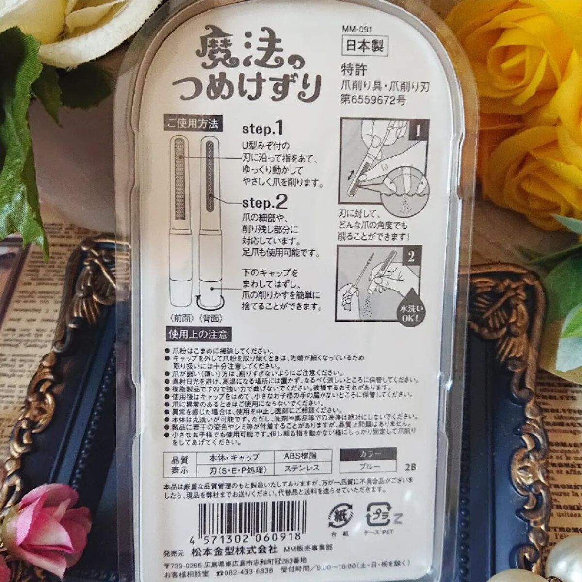 削った粉が飛び散らない!!今までは爪に負担をかけないように爪ヤスリを使っていたけどこれのが早い気がします。U型みぞ付きの刃に沿って爪をあて、ゆっくり動かしてやさしく爪を削ります。刃に対して、どんな爪の角度でも削れます。最初は削るコツがつかめな...