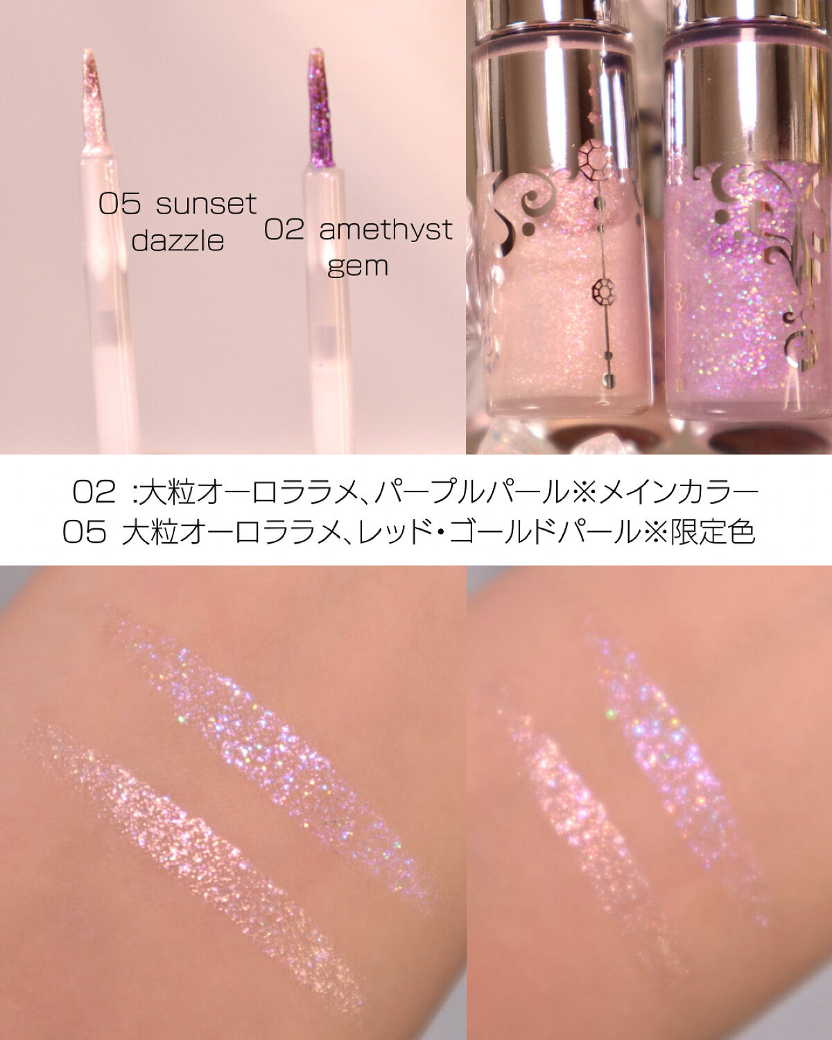 | 高密着で粉飛びしにくく、しっとりとした質感で多彩なラメで立体感を演出! | 詳細を見る | ||