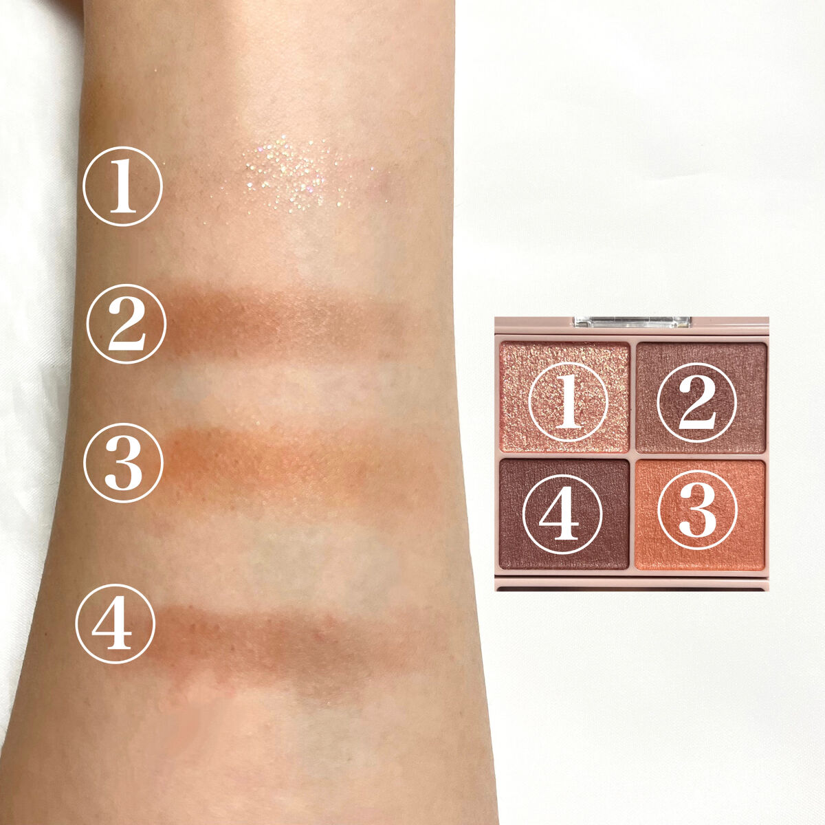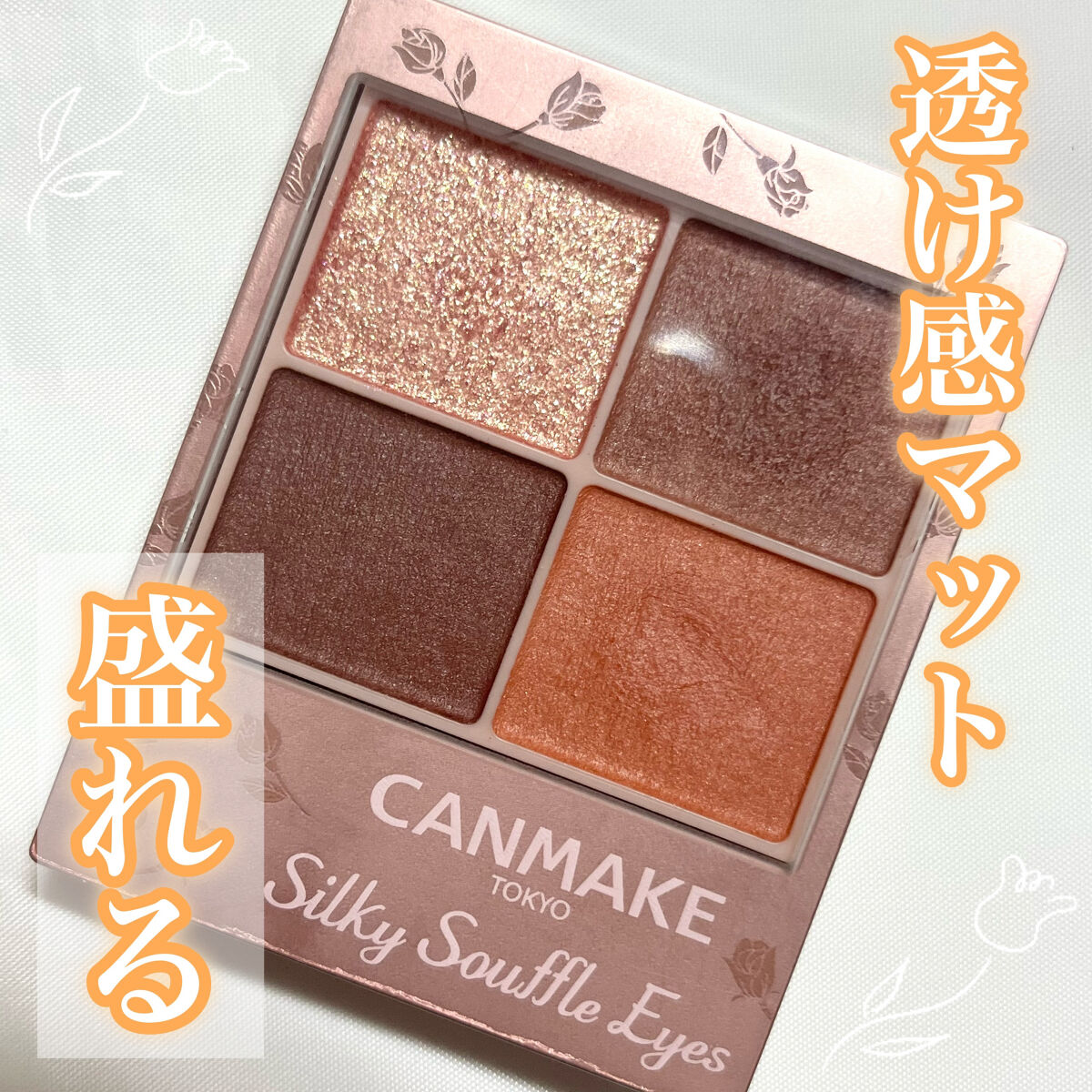 - シルキースフレアイズの姉妹品♡ 肌に溶け込むような透けマットシャドウ 透け感のある柔らかい仕上がりになるマット3色と、透け発色の繊細ラメ1色のパレットシャドウ♡ 完全マットアイや、ラメ×マットアイなど、メイクのパターンを楽しみましょう!