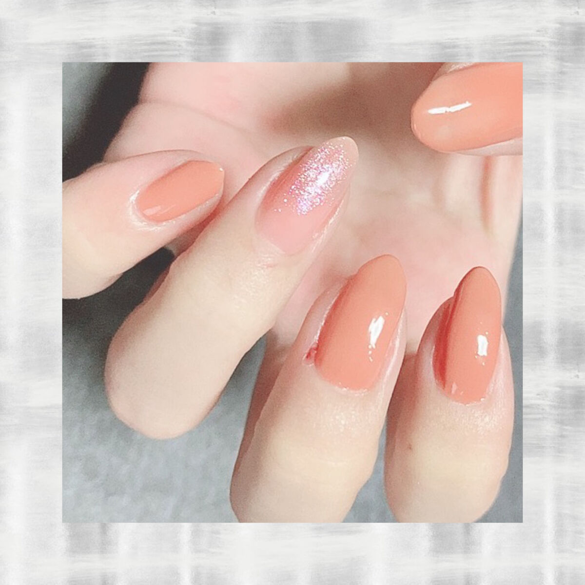 オレンジの誘惑に負けた🧡😍可愛すぎる!!ちふれのオレンジラメ🧡ちふれネイルエナメル017カラフルラメ可愛い、、マジで可愛すぎて夢中で塗ってたら、グラデーションしか出来なかった(笑)オレンジの微細なラメに、大きめゴールドのホロ⭐️塗るとシアーな...