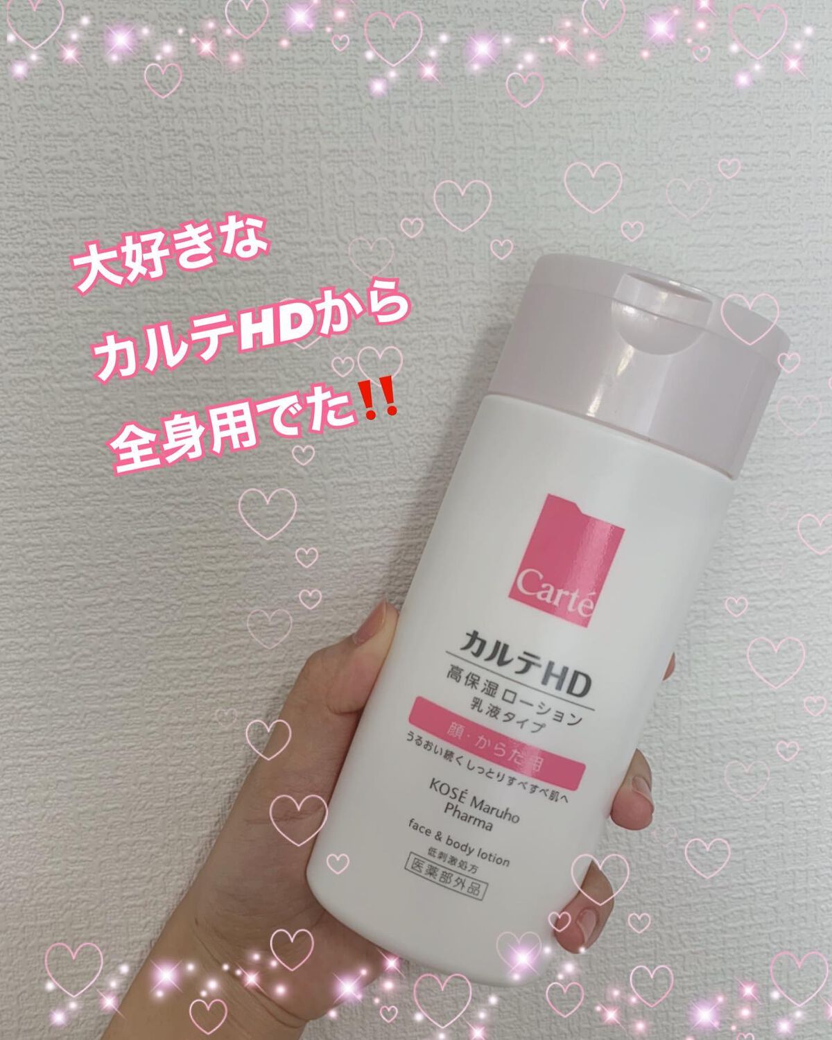 - 【高保湿フェイス&ボディローション】 顔にもからだにも。しっとりやわらか肌つづく。 信頼の保水有効成分「ヘパリン類似物質HD※」配合、低刺激処方の高機能フェイス&ボディローションです。 ヘパリン類似物質HDが、気温・湿度の変化で乾燥しやすいからだの肌のうるおい構造(角層ラメラ)を立て直し、しっとりやわらか肌に導きます。 2種のこだわりオイル配合で、しっとりするのにべたつかず、なめらかにのびひろがる使用感。敏感な肌でもまさつによるストレスがなく、全身をうるおいで満たします。 カルテHDシリーズとしては初めてお子さま(3歳以上)にもお使いいただける商品。 ・ボトルタイプ(220mL) ・ポンプタイプ(410mL) ・つめかえ用(370mL)の3種でラインアップ。 ご自身の保湿に、ご家族や大切なかたの保湿に。みずみずしくなめらかなうるおいが全身を包み込むフェイス&ボディローションです。 ※保水有効成分ヘパリン類似物質のこと <販売名:HD フェイスボディL>
