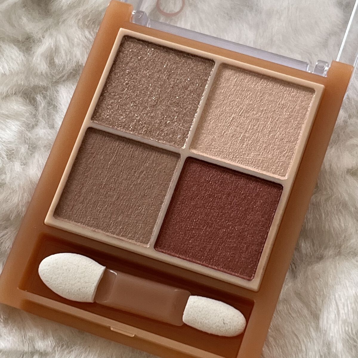 - ラメ・パール・マット3質感の4色アイシャドウ。 肌馴染みの良いベージュを基調としたカラー。ラメ・パール・マットの3質感を重ねて、自然にまぶたを強調し奥行のある大きな目元へ。 しっとり溶け込むような柔らかなパウダーなので、スルスル伸びてまぶたにピタッと密着。保湿成分(スクワラン・ホホバ種子油)配合。