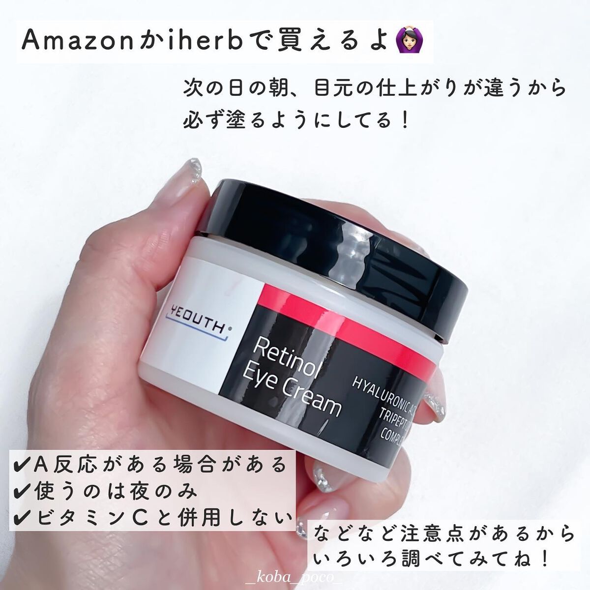 初心者でも毎日使いやすいと話題のサムバイミーのレチノールアイクリーム。 レチノールとグルタチオンが暗い目元を明るくケアしてくれるアイクリーム。 チューブタイプで先端が細いからポイント使いもしやすい!