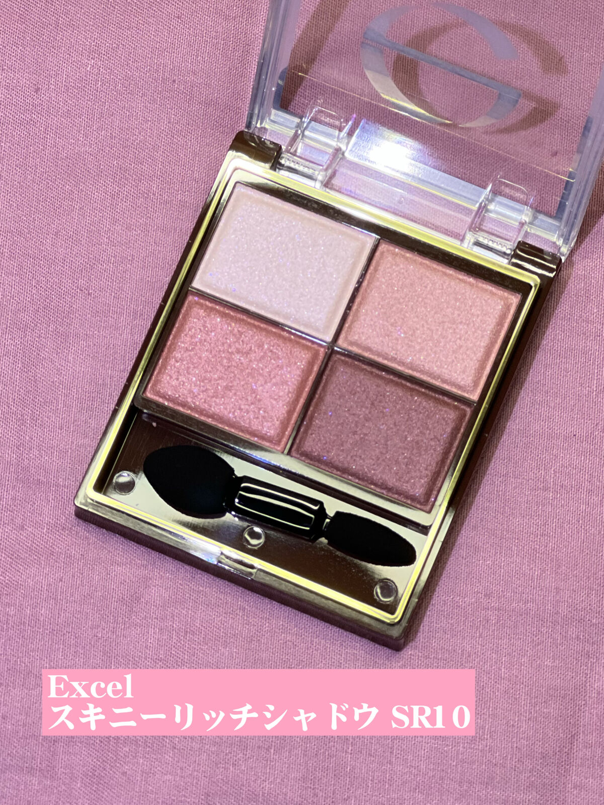 excel リアルクローズシャドウ CS04 プラムニット 青みくすみピンク! 小粒ラメ 密着感すごい!肌本来の艶感みたい 良い❣️ 下の2色は特に良い! 右上:ベース 左下:メインカラー 右下:アイライナー 左上:涙袋