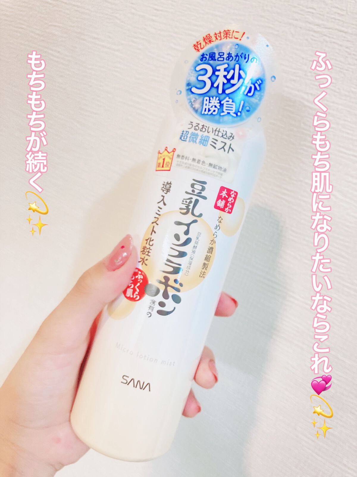 お風呂上がり3秒で保湿できるスプレー化粧水✨ 細かなミストが気持ちよく使えて、お風呂上がりすぐスキンケアできなくての突っ張り感も感じなくなるし、その後のスキンケアの導入化粧水にもなってくれる👏 毛穴より細かく、肌あたりの良いマイクロミストが角層まで浸透し、うるおいのあるお肌に導く😊 九州産大豆「ふくゆたか」から作られた高純度豆乳イソフラボンと豆乳発酵液、さらにヒト型セラミド配合🙌