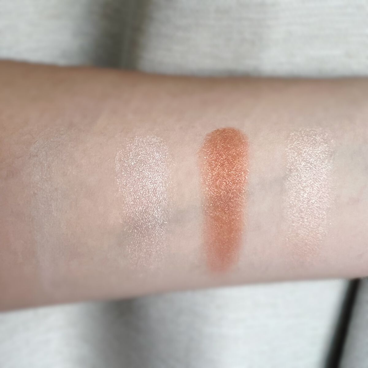 04 ザ・ナラティブ はクールトーンの配色で グレーカラーとかくすんだカラーが多くて 組み合わせは昨日紹介した03より難しいかもしれません。 ヒンスいつも通りの滑らかで発色が良い ただしこのパレットのポイントカラーの ブラックカラーは濃い色なので、キレイに伸ばせないです😢 一番左上はクリームタイプのアイシャドウです 恐らくアイシャドウベースだと思います。 今回の新色03と04 個人的には03の方が気に入りです🌷❤️