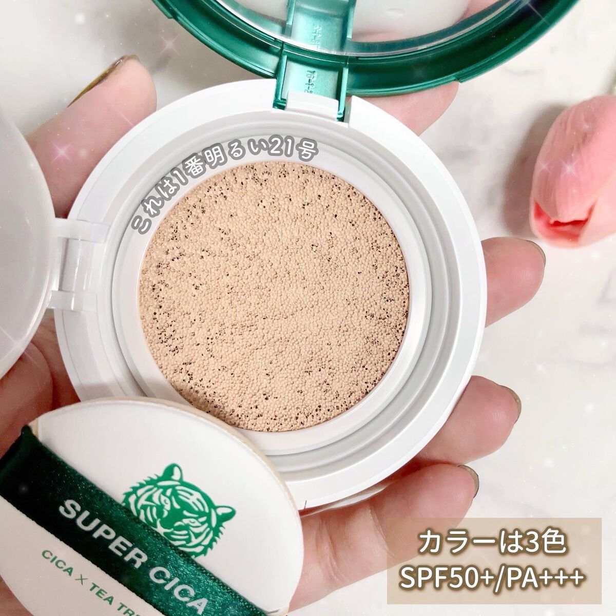 - スーパーシカアンプルの成分が含まれたクッションファンデーションです。 スキンケアをしながら、メイクができるので、肌を整え健やかに保ちます。