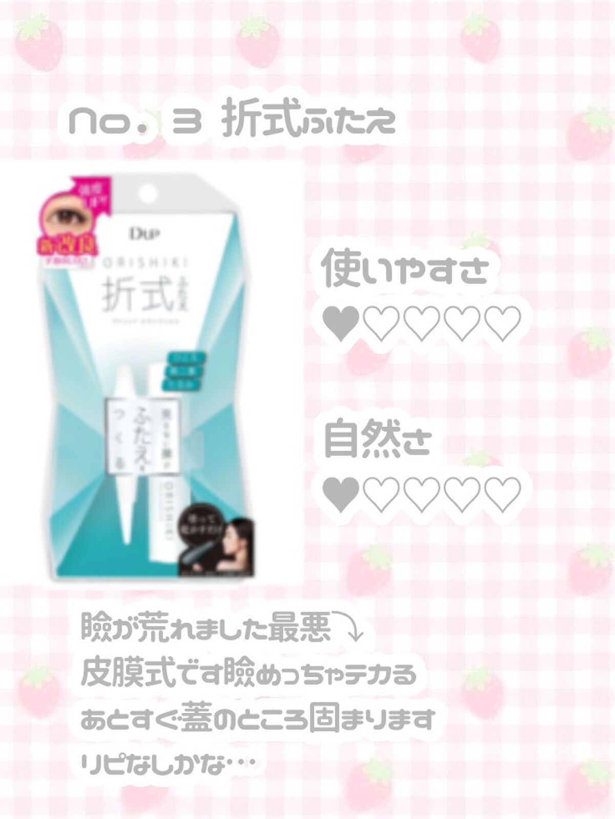 | 二重のり・アイテープランキング第33位 | 友達にもアイプチしてたの?って言われるくらいなのでよくみないとわからないくらい自然なんだと思います | 詳細を見る | |