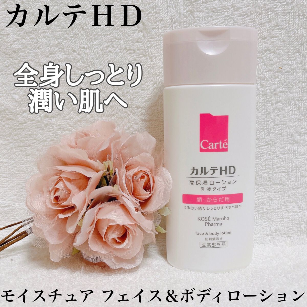 - 【高保湿フェイス&ボディローション】 顔にもからだにも。しっとりやわらか肌つづく。 信頼の保水有効成分「ヘパリン類似物質HD※」配合、低刺激処方の高機能フェイス&ボディローションです。 ヘパリン類似物質HDが、気温・湿度の変化で乾燥しやすいからだの肌のうるおい構造(角層ラメラ)を立て直し、しっとりやわらか肌に導きます。 2種のこだわりオイル配合で、しっとりするのにべたつかず、なめらかにのびひろがる使用感。敏感な肌でもまさつによるストレスがなく、全身をうるおいで満たします。 カルテHDシリーズとしては初めてお子さま(3歳以上)にもお使いいただける商品。 ・ボトルタイプ(220mL) ・ポンプタイプ(410mL) ・つめかえ用(370mL)の3種でラインアップ。 ご自身の保湿に、ご家族や大切なかたの保湿に。みずみずしくなめらかなうるおいが全身を包み込むフェイス&ボディローションです。 ※保水有効成分ヘパリン類似物質のこと <販売名:HD フェイスボディL>