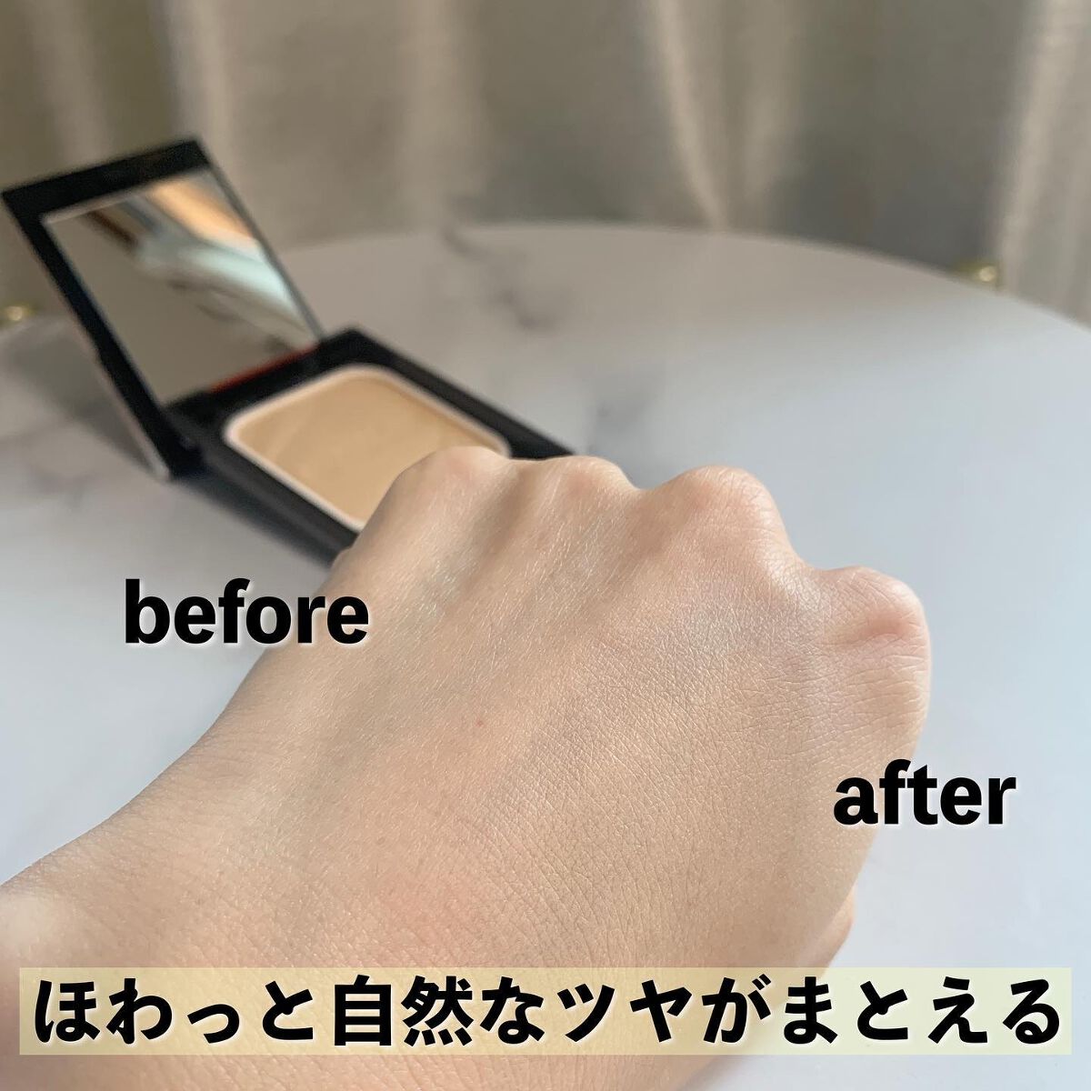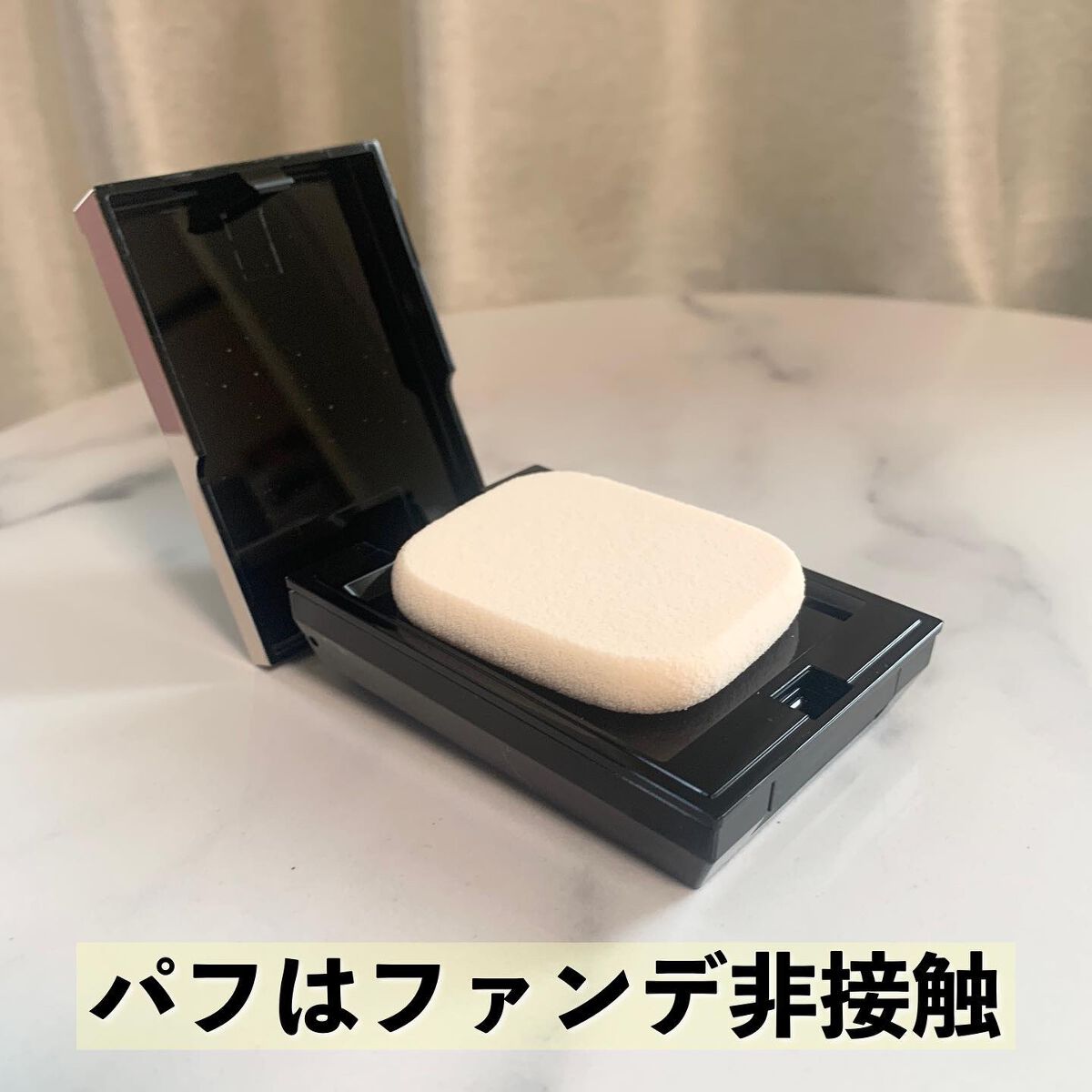 ふんわりとした仕上がりながら自然なツヤ感を演出するパウダーファンデ◎ 資生堂独自の「ムースプレス製法」により、美容液水とパウダーをムース状にして固めた軽やかなテクスチャーが特徴です。 肌に溶け込むようななめらかなフィット感で、毛穴や色ムラをふんわりとカバーしてくれる感じ。