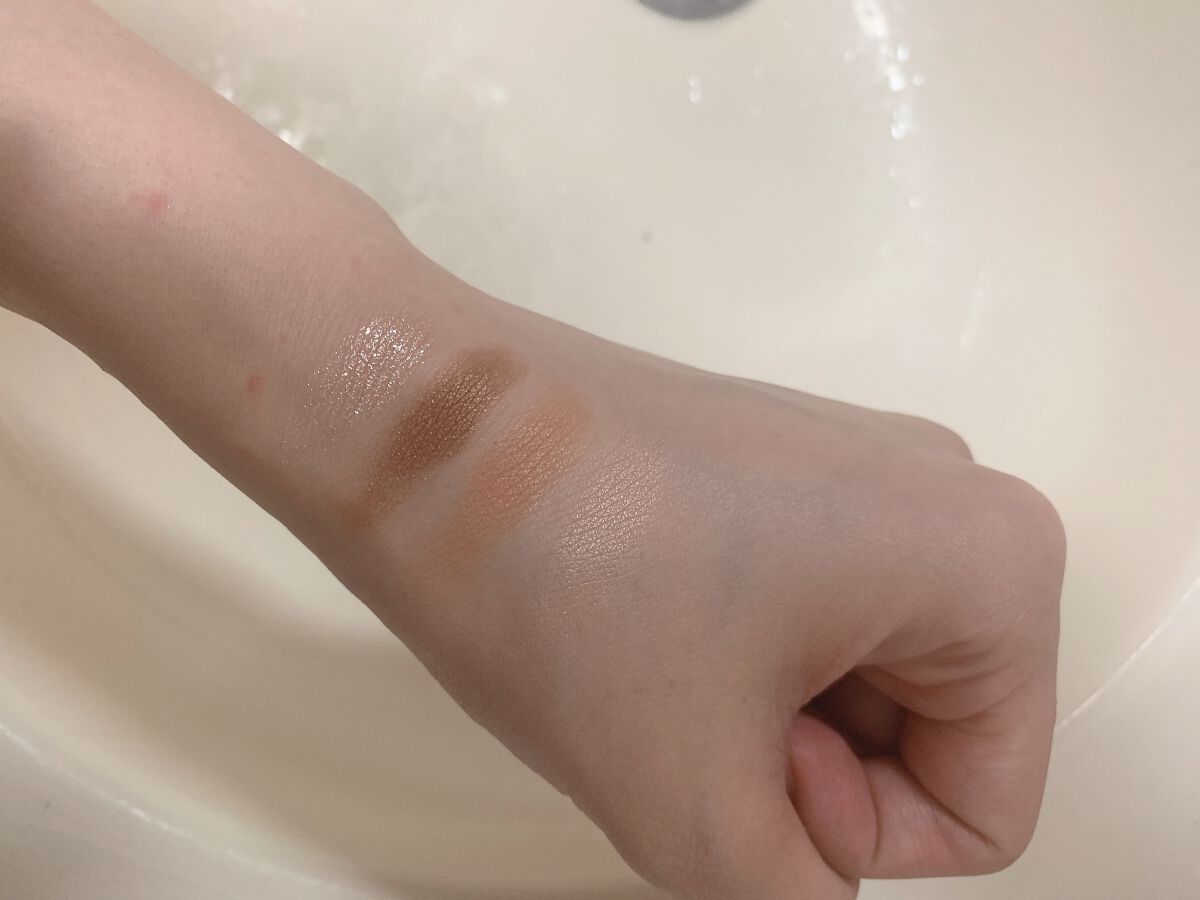 こちらとにかく使いやすかったです! 無難な配色なので毎日メイクにとてもいいと思いました 質感は日本のアイシャドウっぽいツヤっとした感じで、手持ちのブラシで塗った感じだとするする塗りやすかったです 無難なだけにかなり失敗しづらいアイシャドウだと思ったのでメイク初心者の方とかにもおすすめです