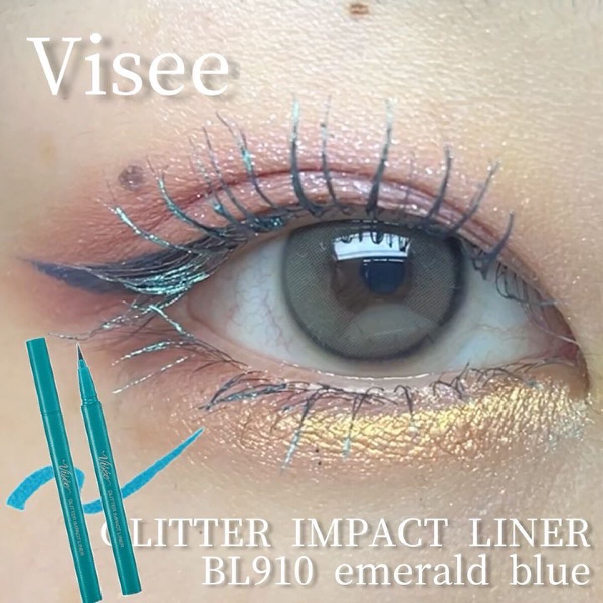プチプラ限定煌めアイライナー♡♡♡Viséeヴィセリシェグリッターインパクトライナー[限定]OR210トパーズオレンジBL910エメラルドブルーGY010ダイヤモンドグレーラメ×透明感でそりゃ私の大好物♡←太い直線のスウォッチは重ね塗りです!...