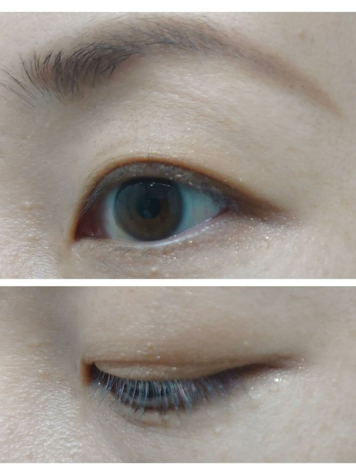 本日のアイシャドウ♡ #Fujiko #足しパレ 02彫り深モーヴを、メインに使用して仕上げました。この彫り深モーヴだけだと、マットに仕上がります。 が、ラメ好きな私は03うるみラメの、左隅のホワイトラメをまぶたに足しました✨✨✨ 涙袋には、うるみラメの左から2番目と、1番右側のラメを使用♫ うるみラメ、かなり万能に使えています。