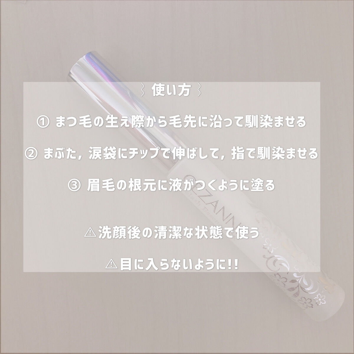- まぶた・眉毛にも使えるまつ毛美容液。 美容液成分がまつ毛にうるおいを与えて、ハリ・コシのあるまつ毛に整えます。 まつ毛・まぶた・眉毛に使える3in1タイプ。 目元の事を考えた6つのフリー処方。(オイルフリー・シリコンフリー・界面活性剤フリー・着色料フリー・香料フリー・紫外線吸収剤フリー) 11種類の保湿成分がまぶたをスペシャルケア。