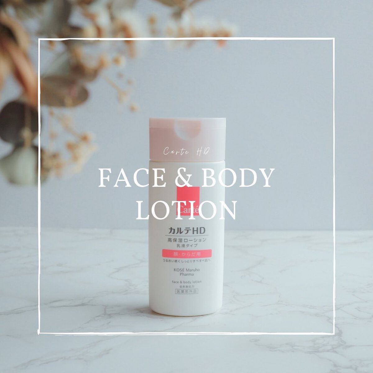 - 【高保湿フェイス&ボディローション】 顔にもからだにも。しっとりやわらか肌つづく。 信頼の保水有効成分「ヘパリン類似物質HD※」配合、低刺激処方の高機能フェイス&ボディローションです。 ヘパリン類似物質HDが、気温・湿度の変化で乾燥しやすいからだの肌のうるおい構造(角層ラメラ)を立て直し、しっとりやわらか肌に導きます。 2種のこだわりオイル配合で、しっとりするのにべたつかず、なめらかにのびひろがる使用感。敏感な肌でもまさつによるストレスがなく、全身をうるおいで満たします。 カルテHDシリーズとしては初めてお子さま(3歳以上)にもお使いいただける商品。 ・ボトルタイプ(220mL) ・ポンプタイプ(410mL) ・つめかえ用(370mL)の3種でラインアップ。 ご自身の保湿に、ご家族や大切なかたの保湿に。みずみずしくなめらかなうるおいが全身を包み込むフェイス&ボディローションです。 ※保水有効成分ヘパリン類似物質のこと <販売名:HD フェイスボディL>