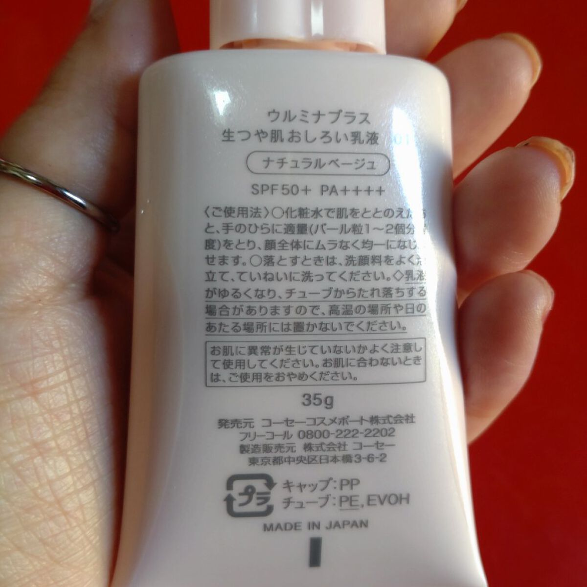 - 美容液80%!※1 みずみずしい“生つや肌”が一日中つづく「生つや肌おしろい乳液 」です。 ♥Piont1: おしろい効果で、毛穴・くすみを自然にカバーできる朝用乳液 オーロラパール※2と皮脂さらさらパウダー※3配合により、毛穴・くすみ・色むら・テカリを自然にカバー。国内基準最高値のUVカット指数(SPF50+/PA++++)で、皮脂・こすれの耐久性に優れていながら、石けんで簡単に落とすことができます。また、マスクをしてもメイクの色移りやよれが気にならない、「8時間化粧もちテスト」※4実施済み。花粉・紫外線・大気中の微粒子などの環境ストレスから肌をまもる機能も搭載しています。 ♥Piont2: 美容液成分80%※1!肌あれケアしながらうるおいつづく 浸透※5保湿成分のマイクロヒアルロン酸※6やマイクロコラーゲン※7が、するりと肌に溶け込み、角層深くまで素早く浸透し、みずみずしいうるおいを与えます。また、アルガンオイル※8やローズヒップオイル※9配合により、ふっくらキメをととのえ、みずみずしい“生つや肌”が一日中つづきます。さらに、ツボクサエキス※10やハトムギエキス※11配合により、ファンデーションしたくない時も負担感をかけずに、肌あれ・くすみ※12ケアもできます。 ♥Piont3:負担感の少ない「スキンエアリー処方」 無鉱物油、タール系色素フリー、パラベンフリー。肌への負担感が少なく、まるでつけていないかのような軽い使い心地です。また、ニキビのもとになりにくいノンコメドジェニックテスト済みです。※13 ♥Piont4:爽やかで透明感のあるクリアフローラルの香り(天然香料配合) ※1粉体と紫外線吸収剤除く ※2マイカ・酸化チタン ※3ポリメタクリル酸メチル ※4当社調べ。効果には個人差があります。 ※5角層まで ※6加水分解ヒアルロン酸・GL(保湿) ※7加水分解コラーゲン・GL(保湿) ※8アルガニアスピノサ核油・GL(保湿) ※9カニナバラ果実油・GL(保湿) ※10ツボクサ葉エキス・GL(保湿) ※11ハトムギエキス・GL(保湿)、GLはグリセリンです ※12乾燥による※13すべての方にコメド(ニキビのもと)が発生しないというわけではありません。