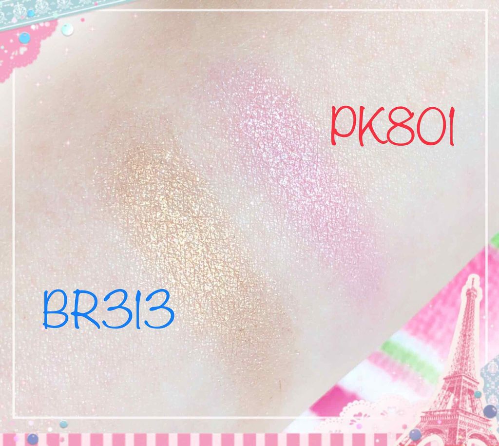 エスプリークの単色カラーが10年以上前から好きなのですが、当時はめっちゃ流行ってて限定色出るたびすぐ売り切れ! まばゆいラメ入り明るめグリーンのGR700を目尻側においしそうなマットブラウンのBR305を締め色に ラメもキラキラでかわいいんですよ。