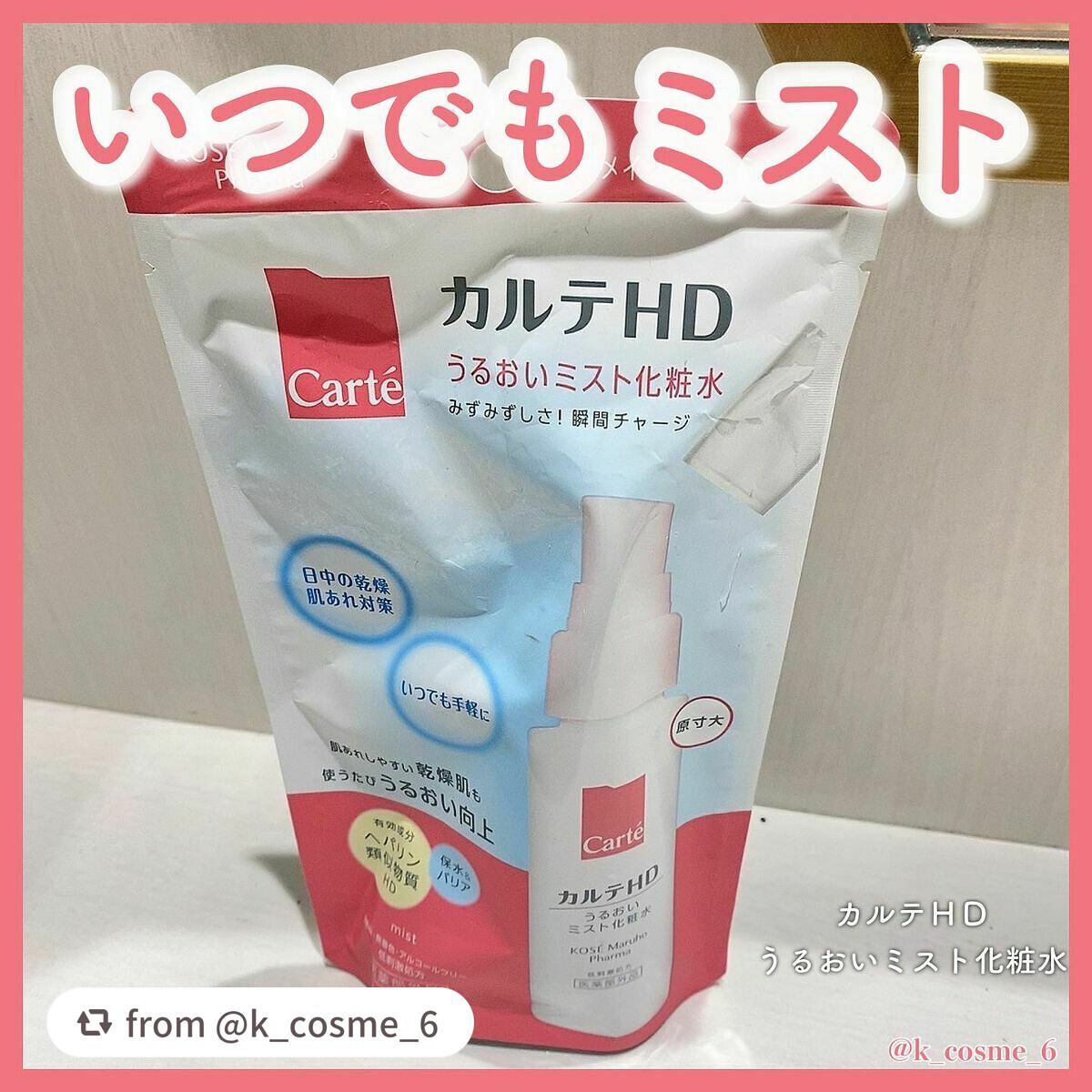 - 【うるおいミスト化粧水】 信頼の保水有効成分「ヘパリン類似物質HD※」を配合したミスト化粧水です。 こだわったのは、いつでもどこでも快適にケアできる使い心地。シュッとひと吹きで粒子の細かいミストがふんわり肌を均一におおって、ベタつかず、すみずみまでみずみずしいうるおいをチャージ。 保水するだけでなく、肌のうるおい構造(角層ラメラ)に働きかけてバリア機能の回復をサポート。 コーセー自信の技術“うるおい浸透カプセル”を採用。使うたびにうるおいを角層深く届けてキメの整った肌へ。 携帯しやすくメイクの上からも使えるミストは、日中の肌あれ対策にも最適。手軽に本格的な保湿ケアが叶います。 ※ヘパリン類似物質のこと <販売名:HDミスト>