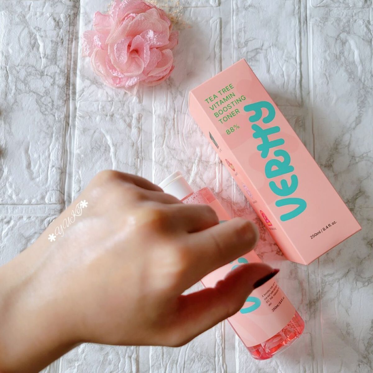 『ティーツリー88%ビタミンブースティングトナー』精製水の代わりにティーツリー葉水88%含まれていて刺激を受けて敏感になった肌を優しく労わってくれるトナー💕肌に元気がなくくすみがちな時にもおすすめだよ!ピンク色はビタミンB12の色なんだって🩷...
