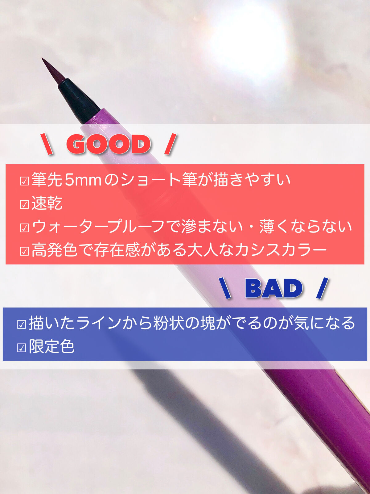| アイライナーランキング第70位 | なめらかな描き心地と太さの調整のしやすさがお気に入りのアイライナーです。 | 詳細を見る | |