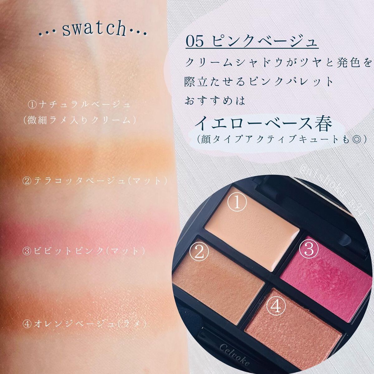 発売からちょっとお時間経ってしまいましたが😇 春の日差しのようなぬくもりを感じるパレット さまざまなピンクアイメイクを楽しめるパレット 発色はそれほど強くないので、最近韓国メイクでトレンドの色みを控えめにしたメイクにも良さそうです◎ 私の場合(ブルーベースウィンター)は発色と敏感肌保護のためアイシャドウベース仕込んで使用します🤔