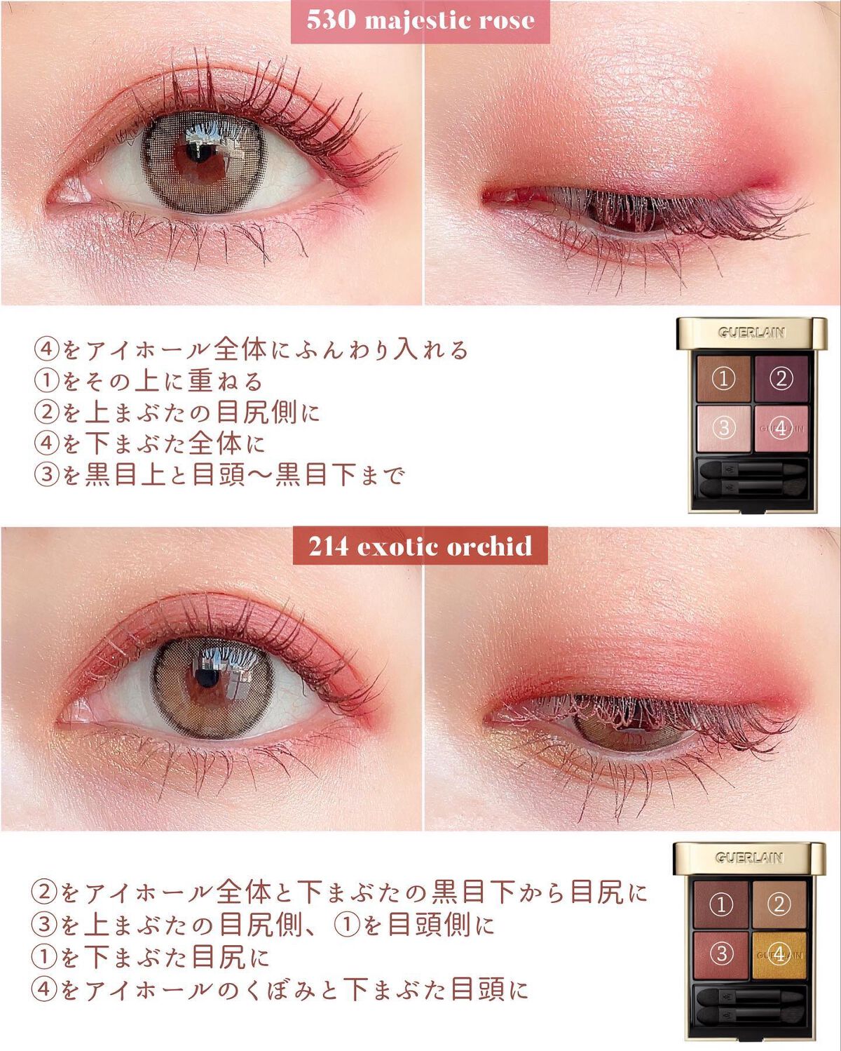 .✔︎GUERLAIN #オンブルジェ.7月15日に全国発売されるマジェスティックフェザーコレクションオンブルジェからは新2色が登場✨🤎131バーディベージュ ブラウン基調の落ち着いた配色ながら 右上のピンクベージュの濡れツヤ感がめちゃくちゃ...