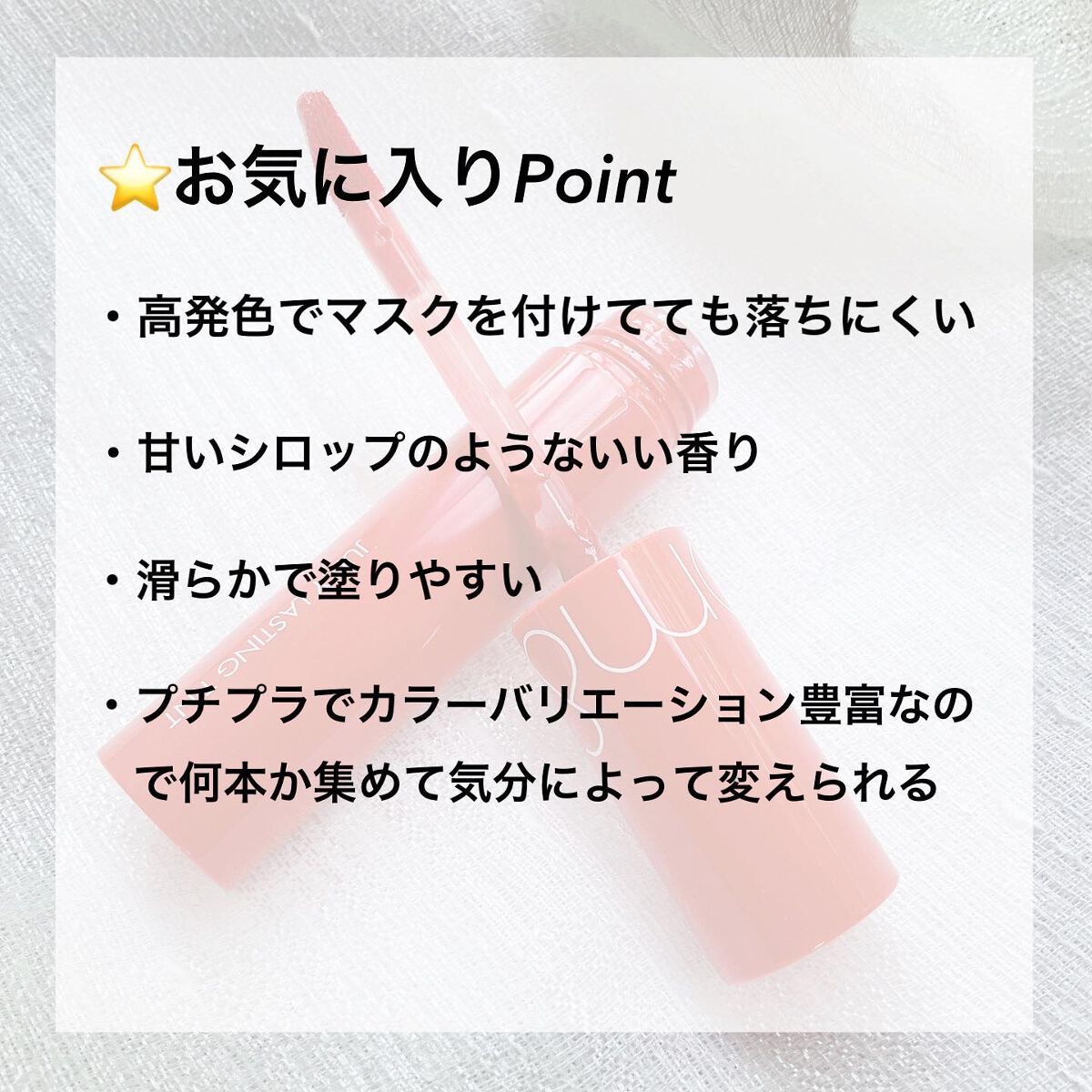 | 口紅・グロス・リップライナーランキング第120位 | 潤いが長続きします! 透け色ですが、重ねればパキッと仕上がるので調整しやすいティントだと思います!! | 詳細を見る |