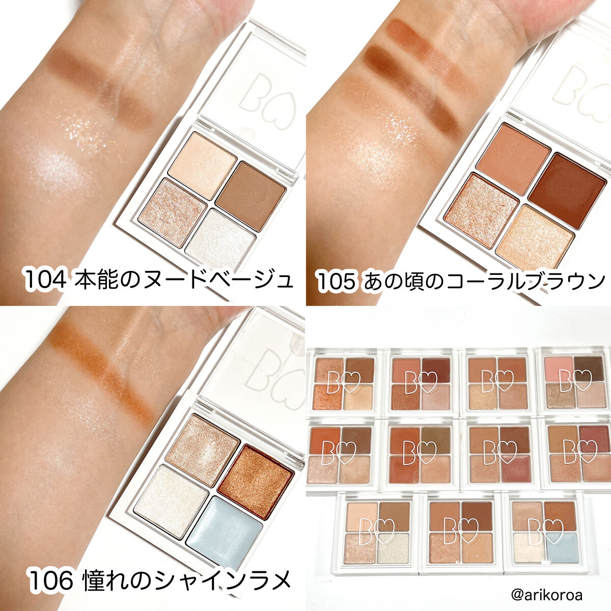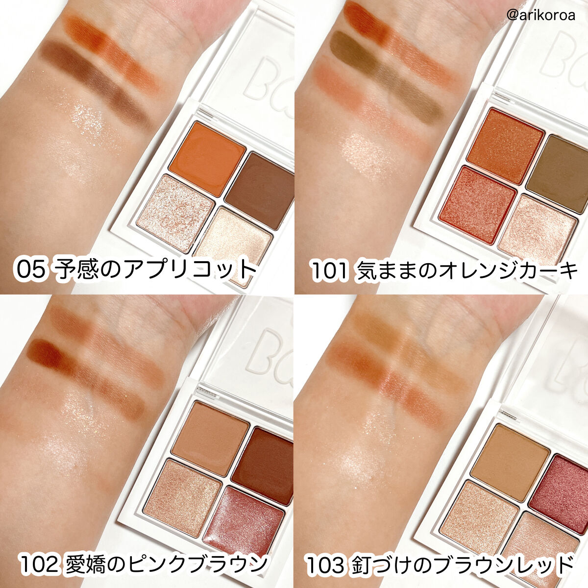 - 魔法の4色で印象的な目元に。 きらめきシャドウ×ハイライター あらゆるアイシャドウパレットを試してきた吉田朱里がたどり着いたのは“カラー3色+ハイライト”の4色パレット。 質感の異なるきらめきパウダーと、こだわりの配色で視線をひきつける印象的な目元へ。 立体感をつくるツヤ増しハイライター入り。 細部まで計算されたベストパレットで、一気にアイドル級の目力を演出します。 ※チップ・鏡はついておりません。 ※2023/3/31 リニューアル