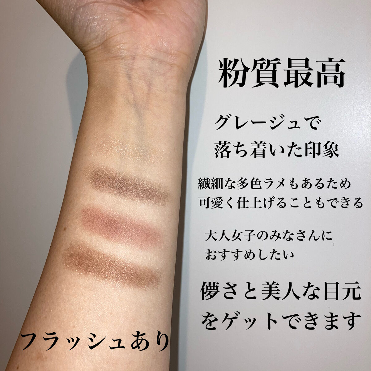 特にブルベさん、大人女子のみなさんにおすすめです☺︎ 一見難しそうですが、さすがSUQQU様。 重ねてもくすまないどころか、透明感が爆上がり。すごいです。 細かい上品なラメがまたこの配色にマッチします。 『花のような優しさを持ちつつ、知性と個性を感じさせます』のコンセプトも素敵ですよね。